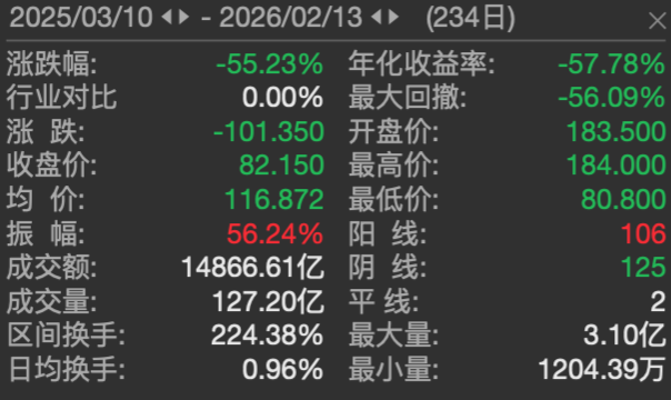 今日下午,美团-W(03690.HK)股价波动,盘中跌幅超过4.5%,市值跌破5000亿港元。截至收盘,美团股价有所回升,下跌3.18%,报82.15港元/股,市值5021亿元。近一年,美团股价震荡走低。2025年3月10日至今,美团股价跌幅达55.23%。