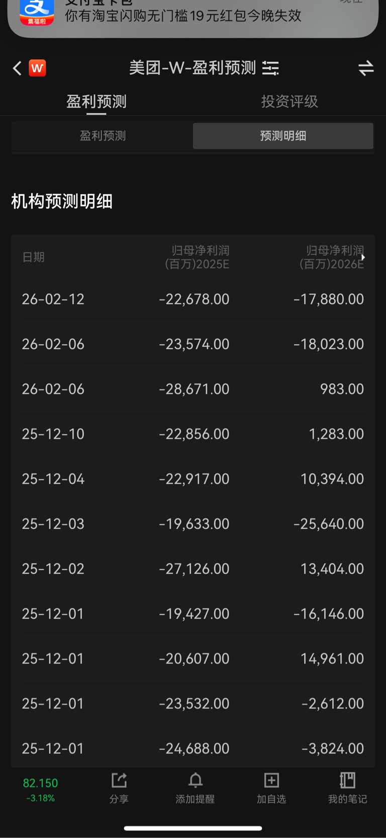 2026年2月,有三家投行进行业绩预测,海通国际预计亏损226亿,中金公司预计亏