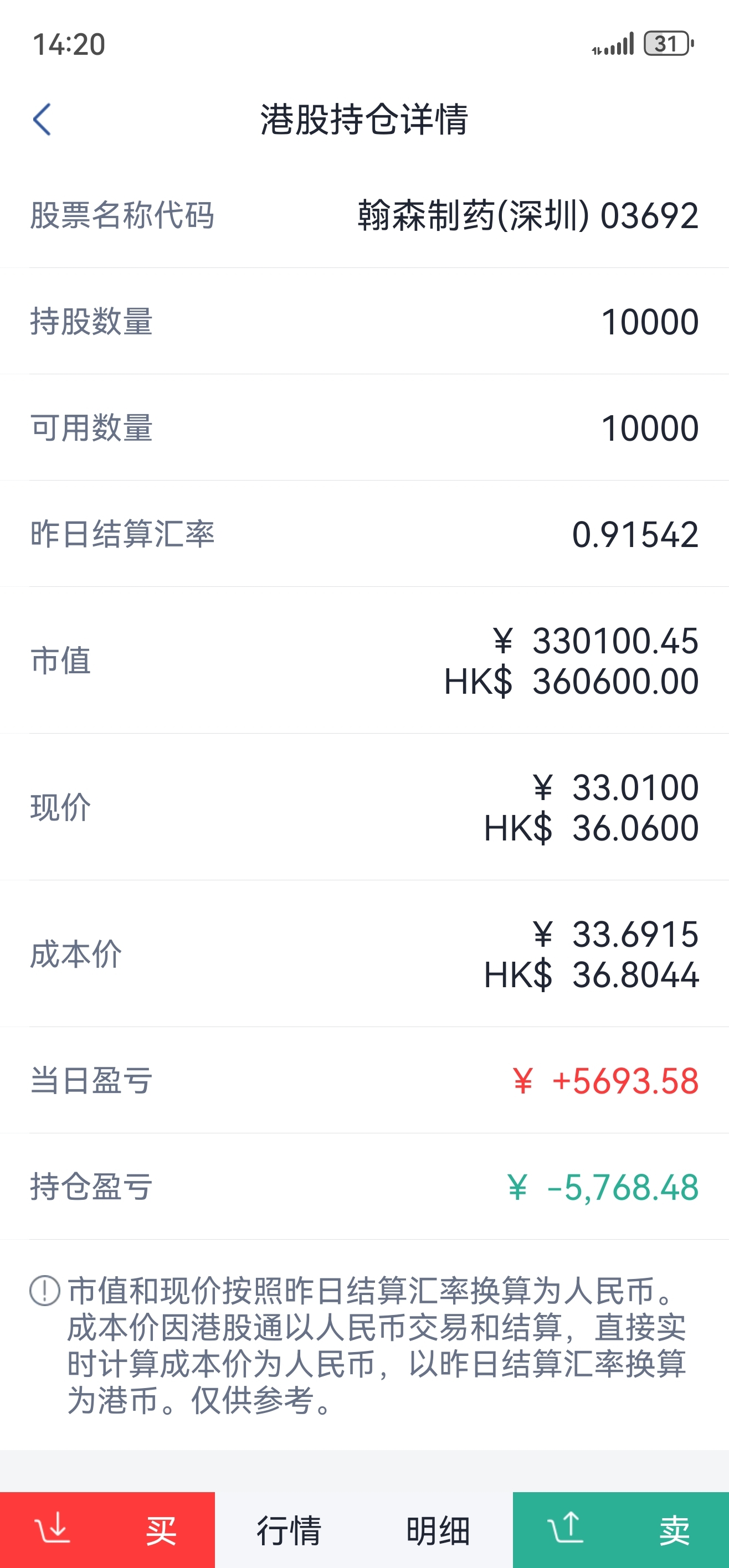 $翰森制药(HK|03692)$ 好不容易等到浮盈了,却无法交易