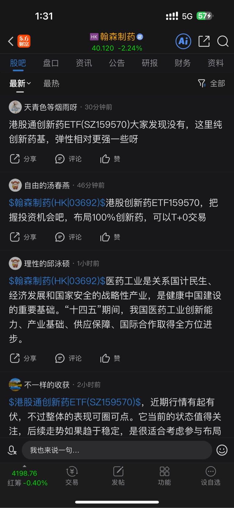 $翰森制药(HK|03692)$ 每天都有人跑出来唱多,小心被套