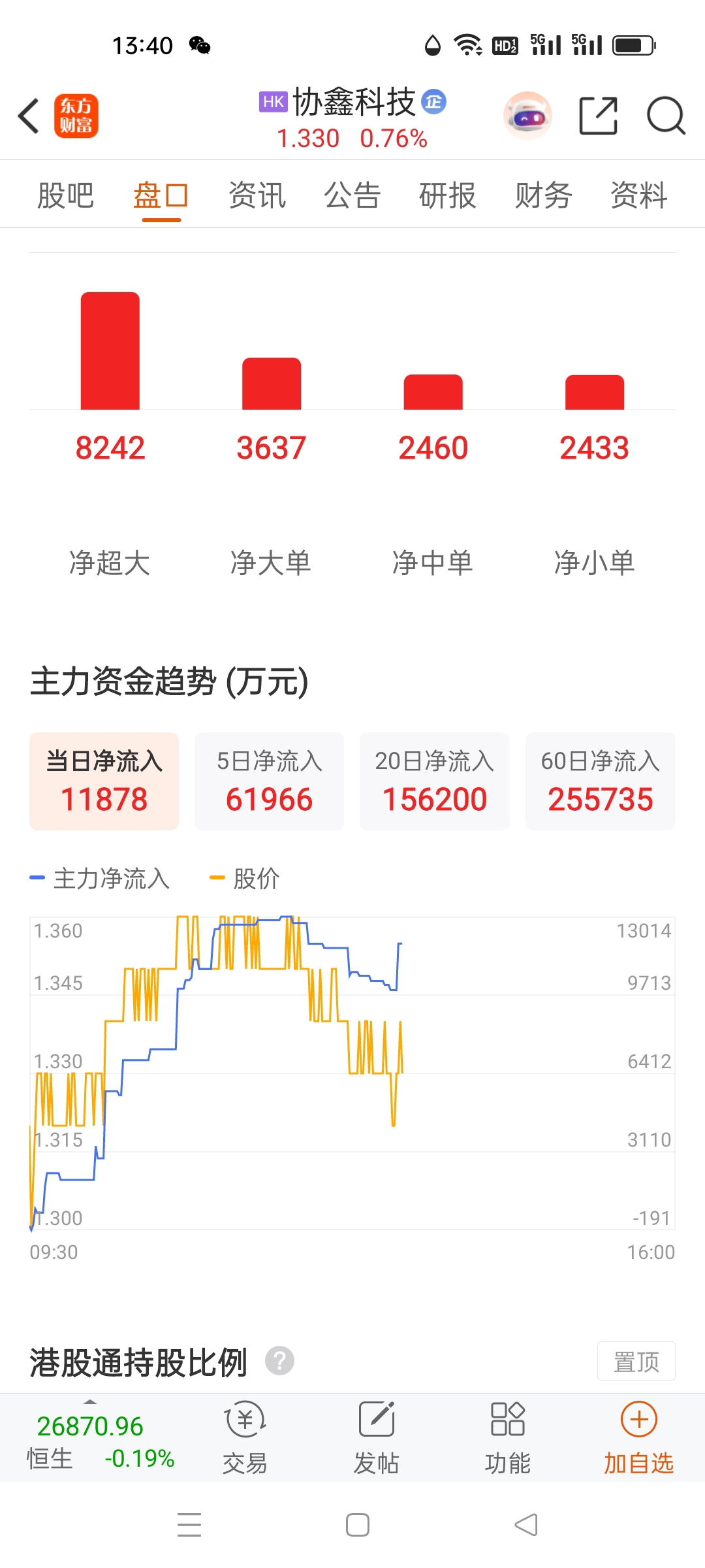 $协鑫科技(HK|03800)$ 1.33补点仓!主力净流入,应该比较安全!