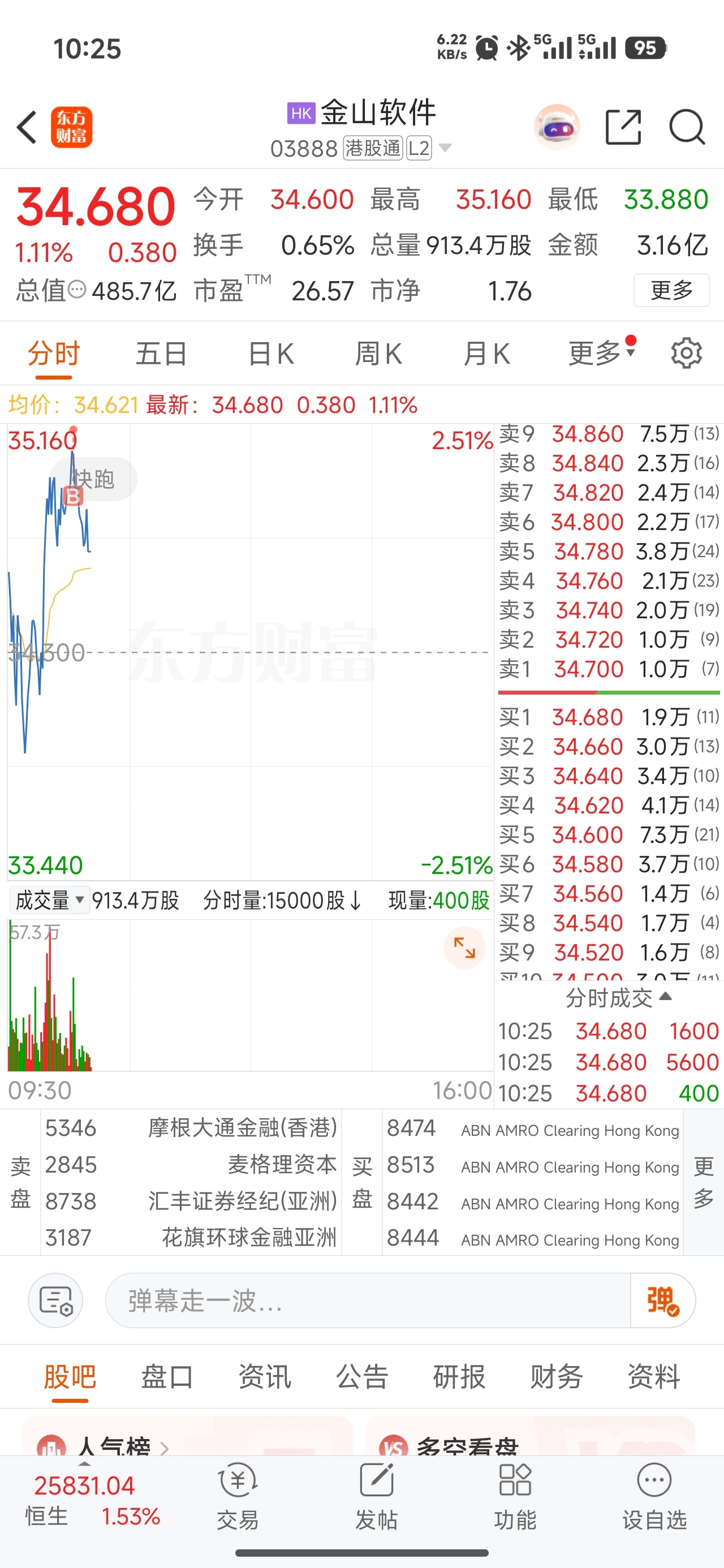 $金山软件(HK|03888)$ 确实牛皮,盯了半小时盘,成功把自己套在山顶。