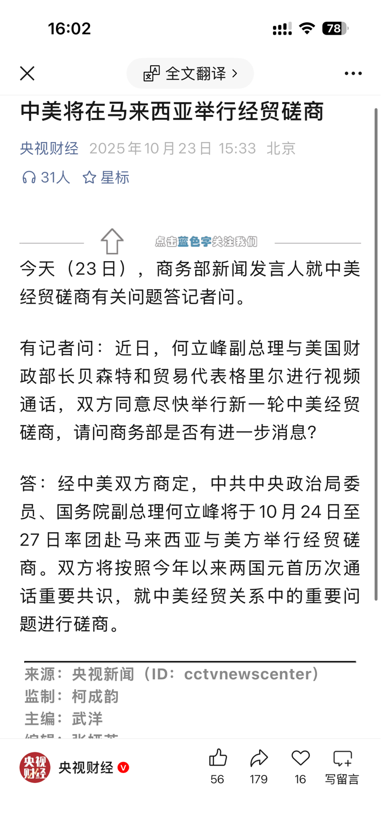 经中美双方商定,中共中央政治局委员、国务院副总理何立峰将于10月24日至27日率团赴马来西亚与美方举行经贸磋商。双方将按照今年以来两国元首历次通话重要共识,就中美经贸关系中的重要问题进行磋商。