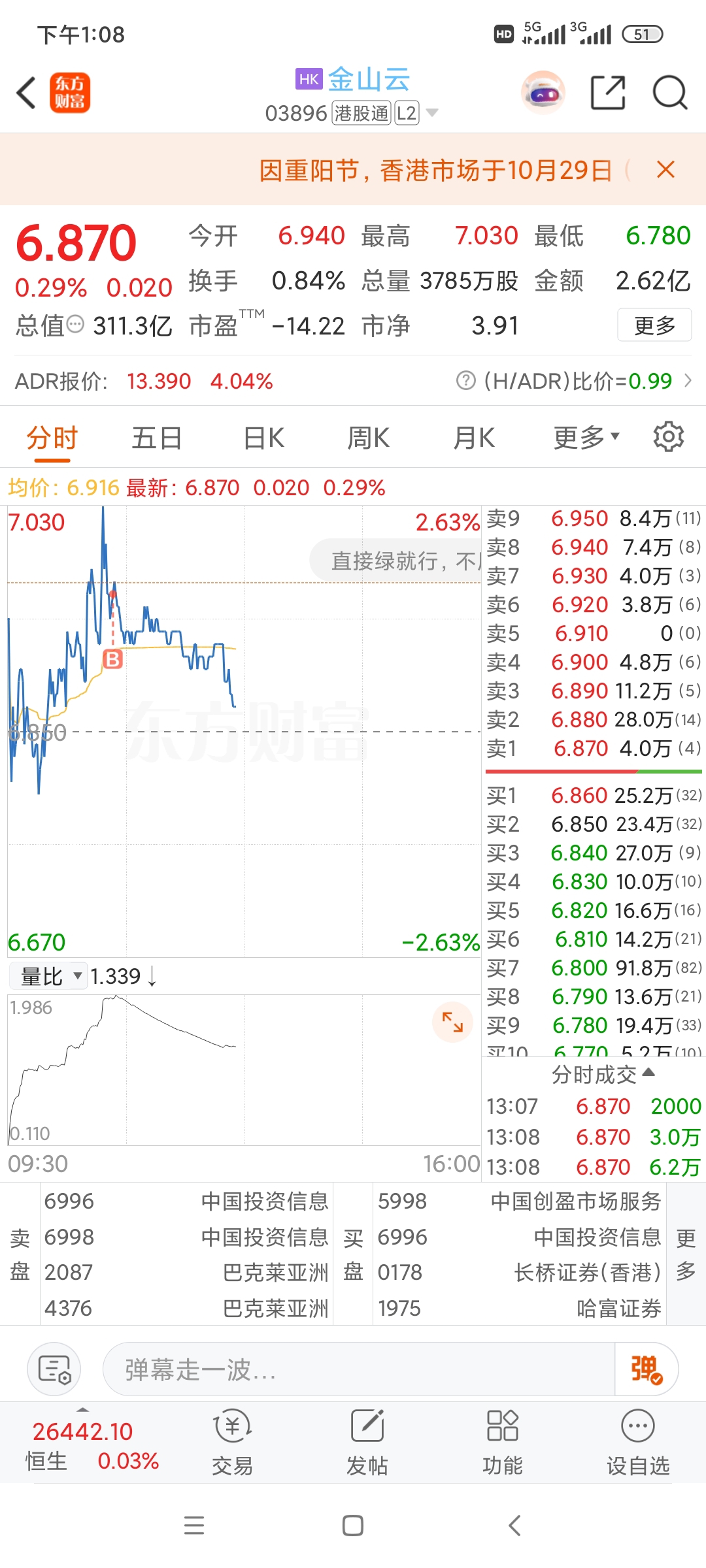 $金山云(HK|03896)$ 两年了,买了二十多只票,都是这样,买进就拐头向下,已赔34%
