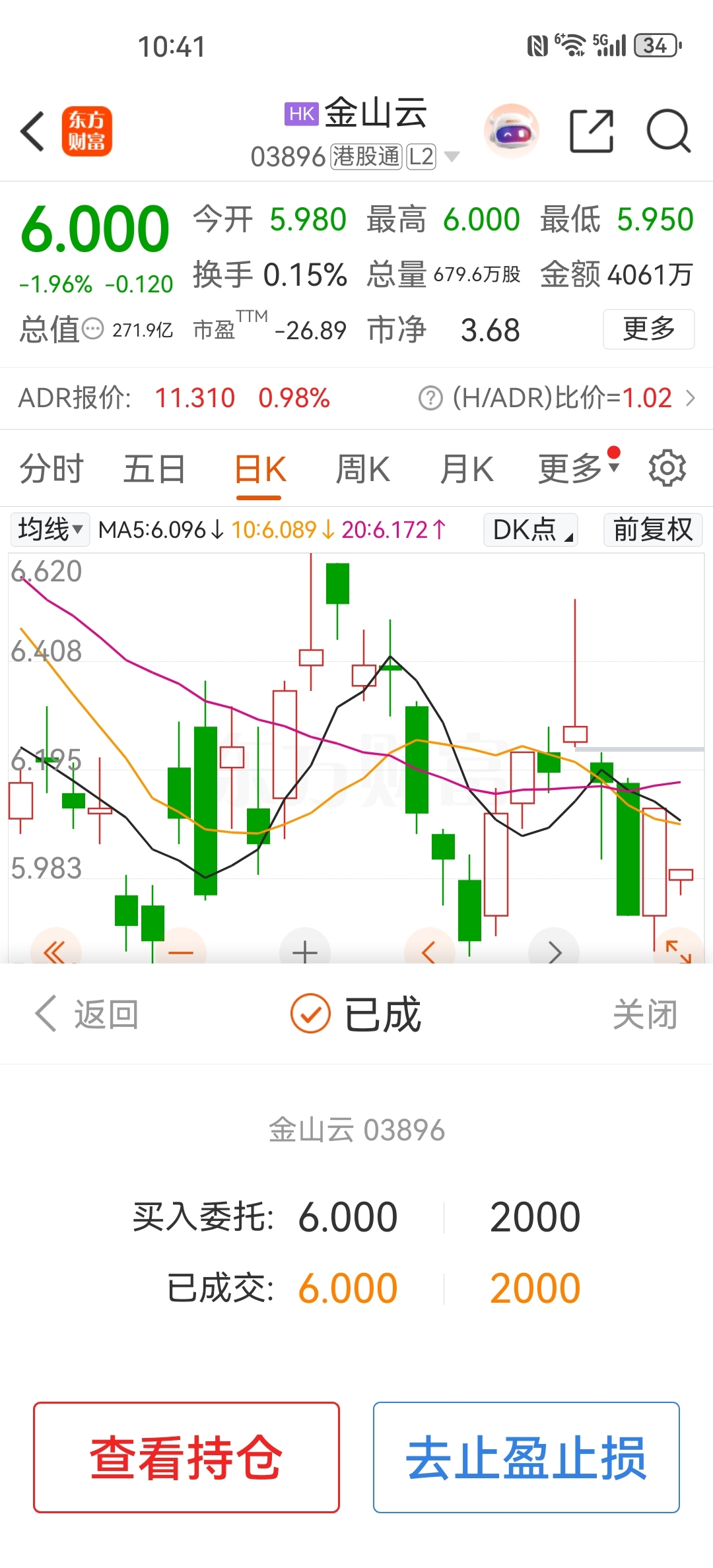 $金山云(HK|03896)$ 底部无量孕育线,技术上是反转信号,但不排除其他因素影响继续下探。