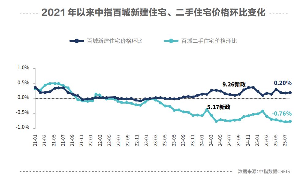 “去年9·26新政后,二手房价格环比跌幅有所收窄,期间成都、深圳等城市二手房价格环比出现阶段性上涨。今年二季度以来,随着政策效应减弱及挂牌量保持高位,百城二手住宅价格环比跌幅再次扩大,短期价格仍面临一定压力。”曹晶晶指出。