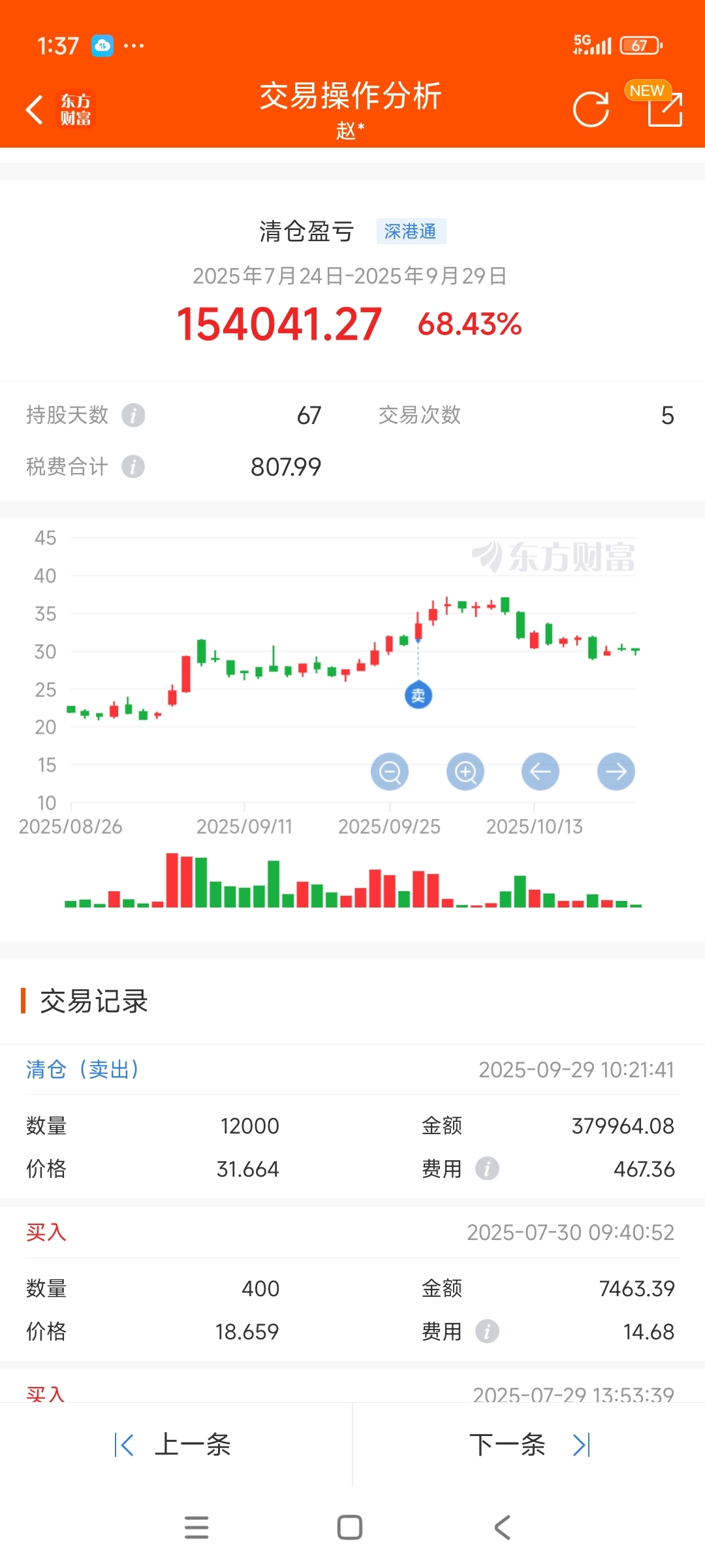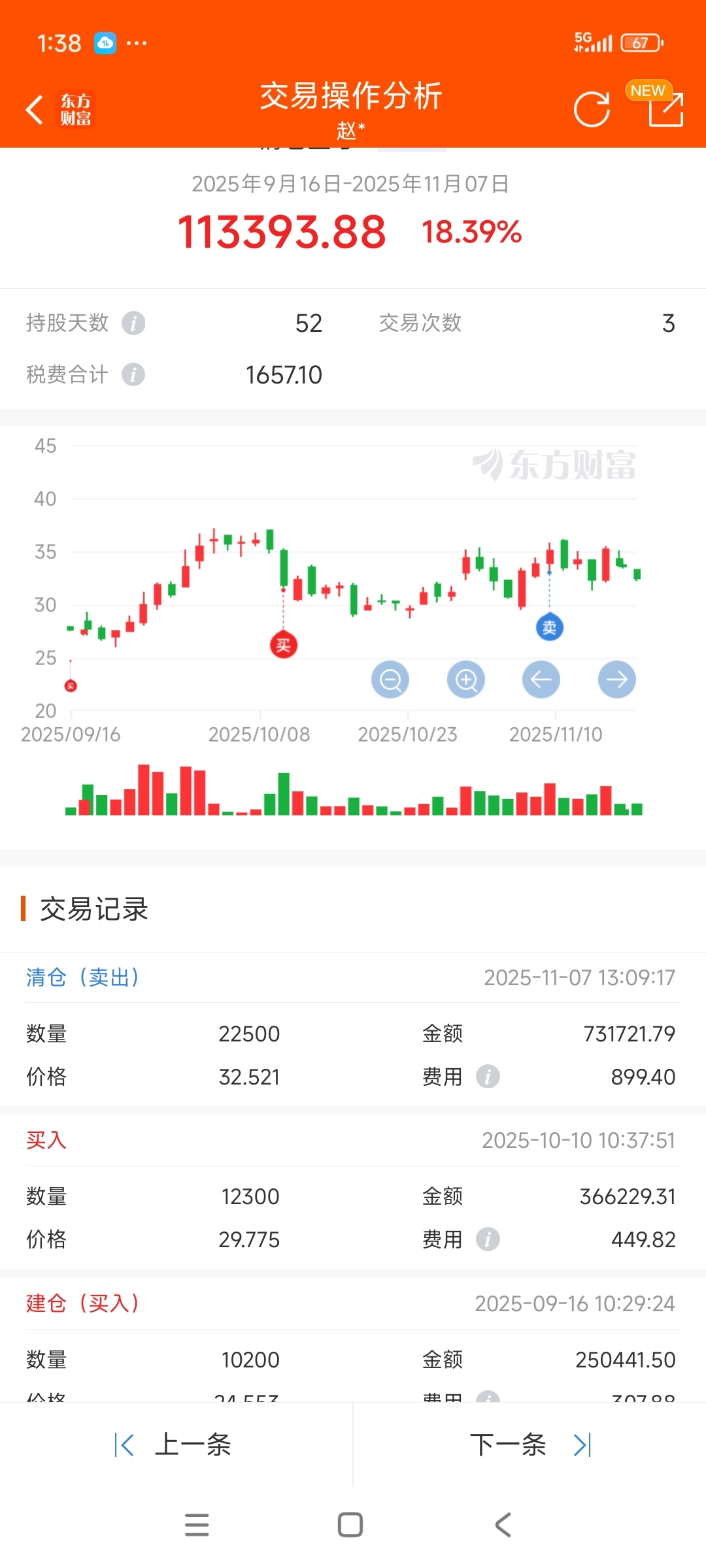 卖得几及时,小赚一笔。