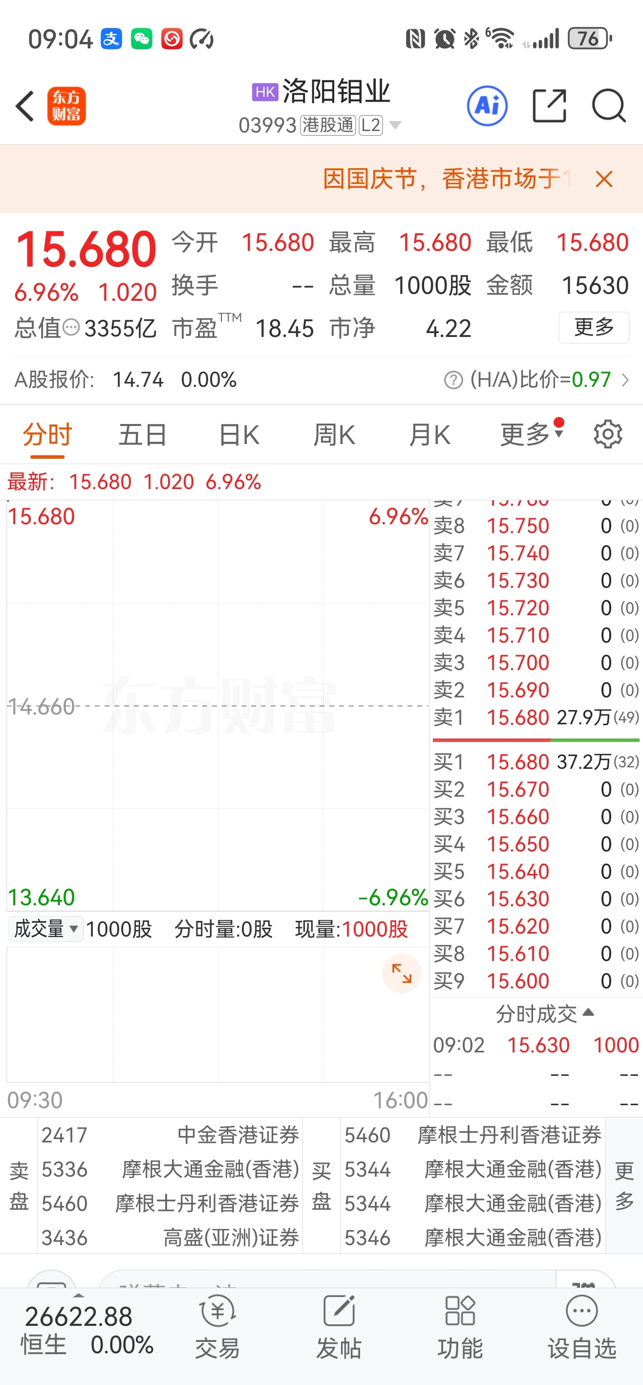 $洛阳钼业(HK|03993)$ 又是诱多吗?几天20%了!