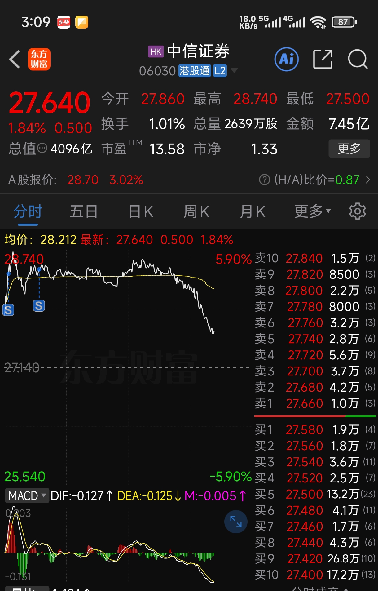$中信证券(HK|06030)$ 港股通的票看着便宜但是不灵活,手续费还高,以后做etf去了