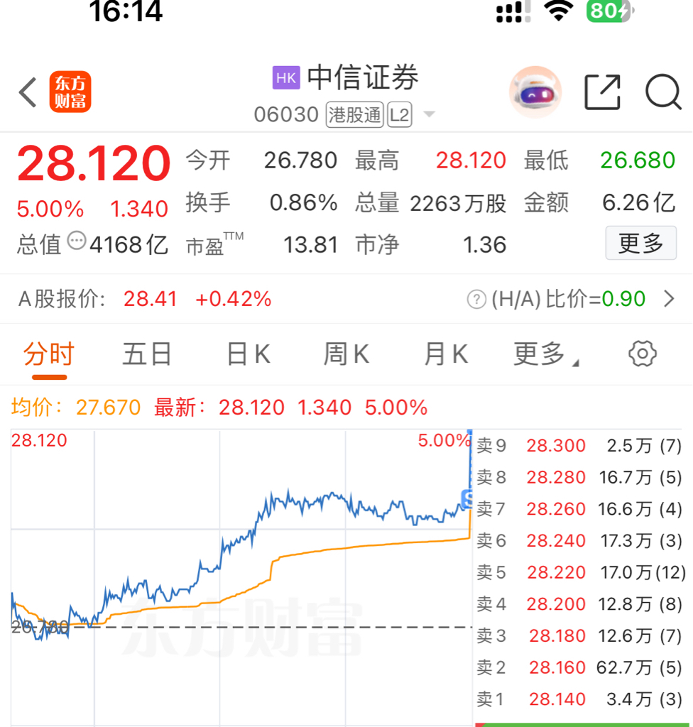 $中信证券(HK|06030)$ 这单挂的