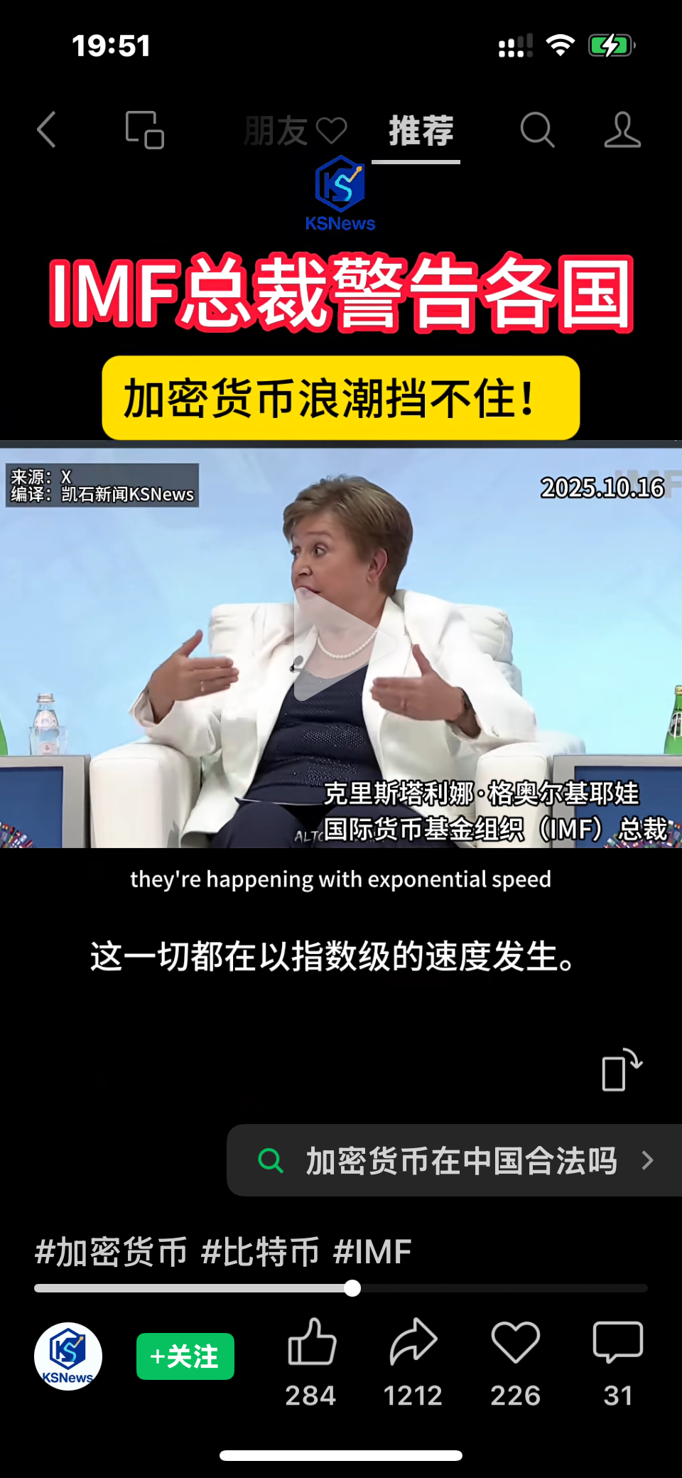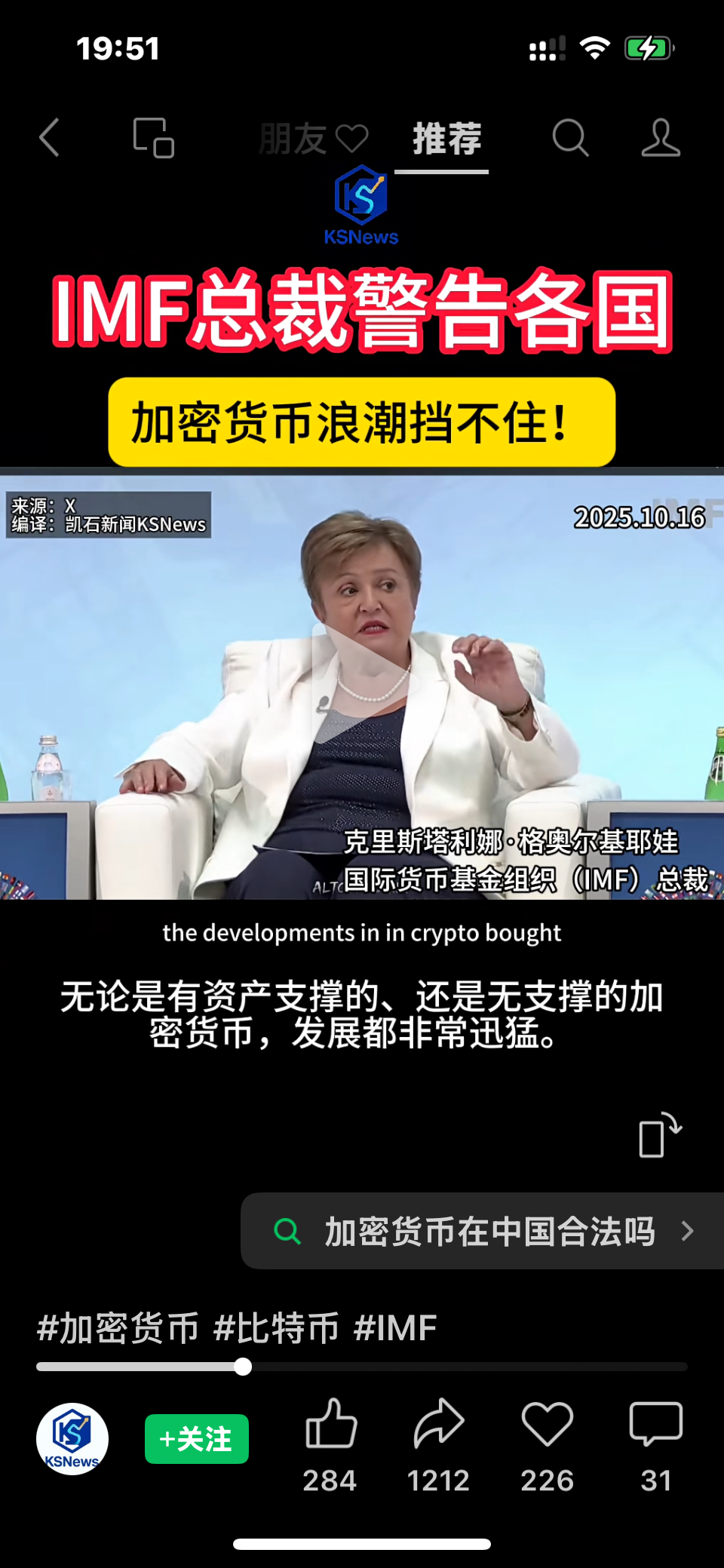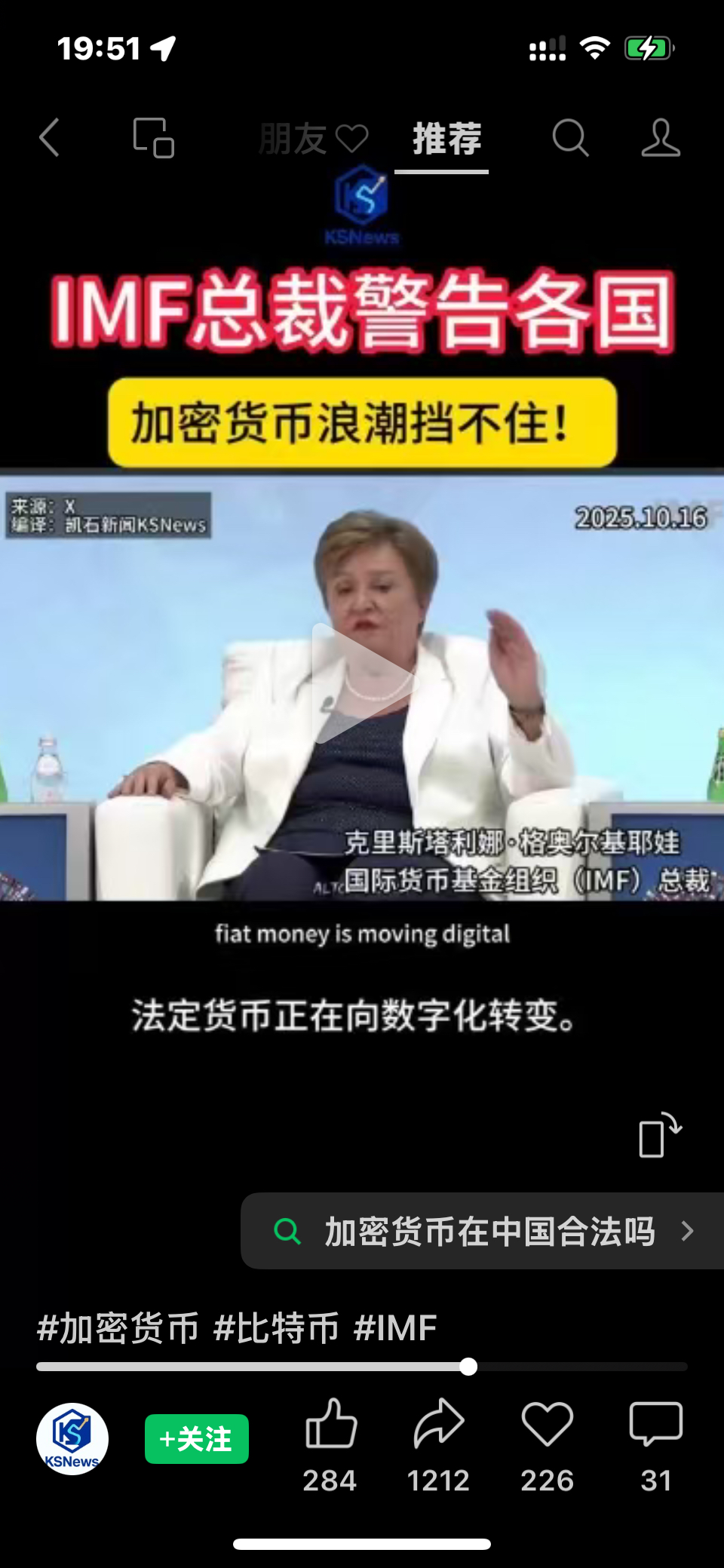 $众安在线(HK|06060)$ IMF总裁警告各国,加密货币浪潮挡不住!