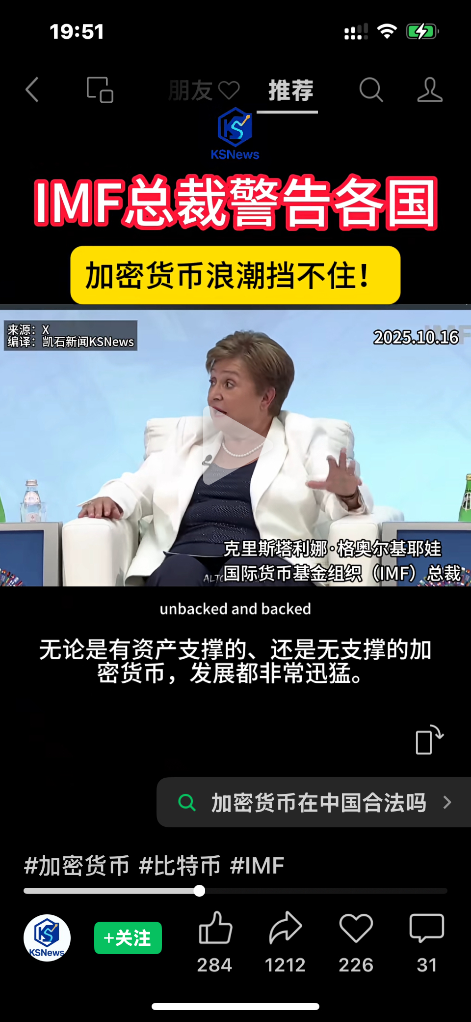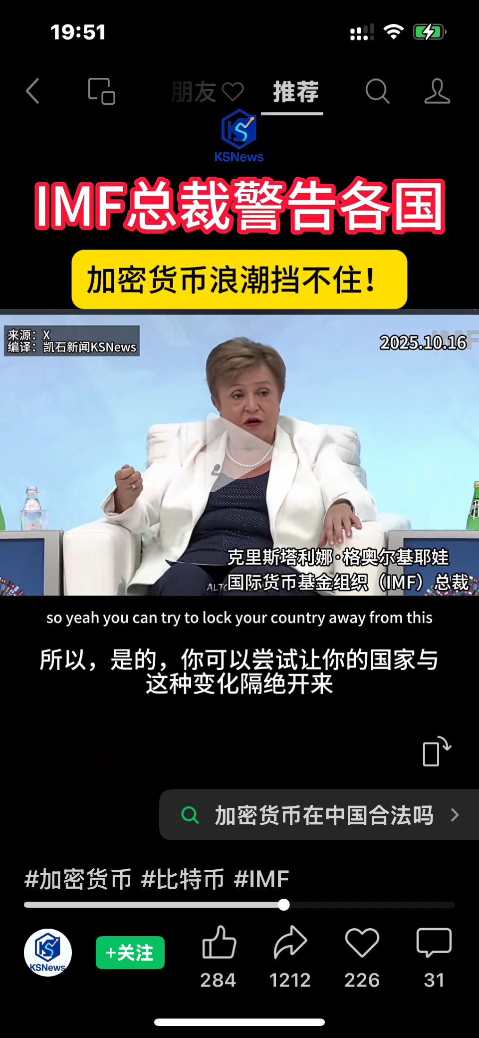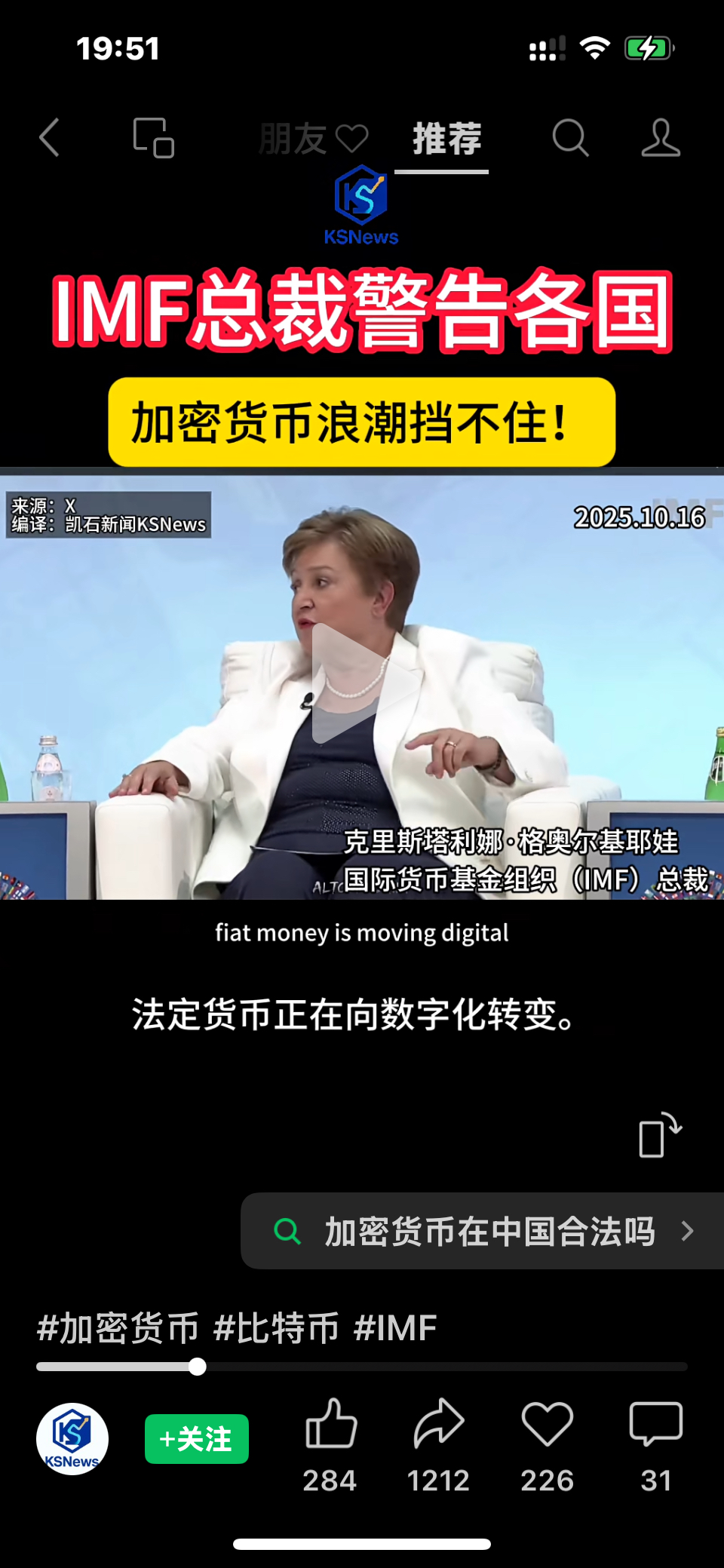 $众安在线(HK|06060)$ IMF总裁警告各国,加密货币浪潮挡不住!