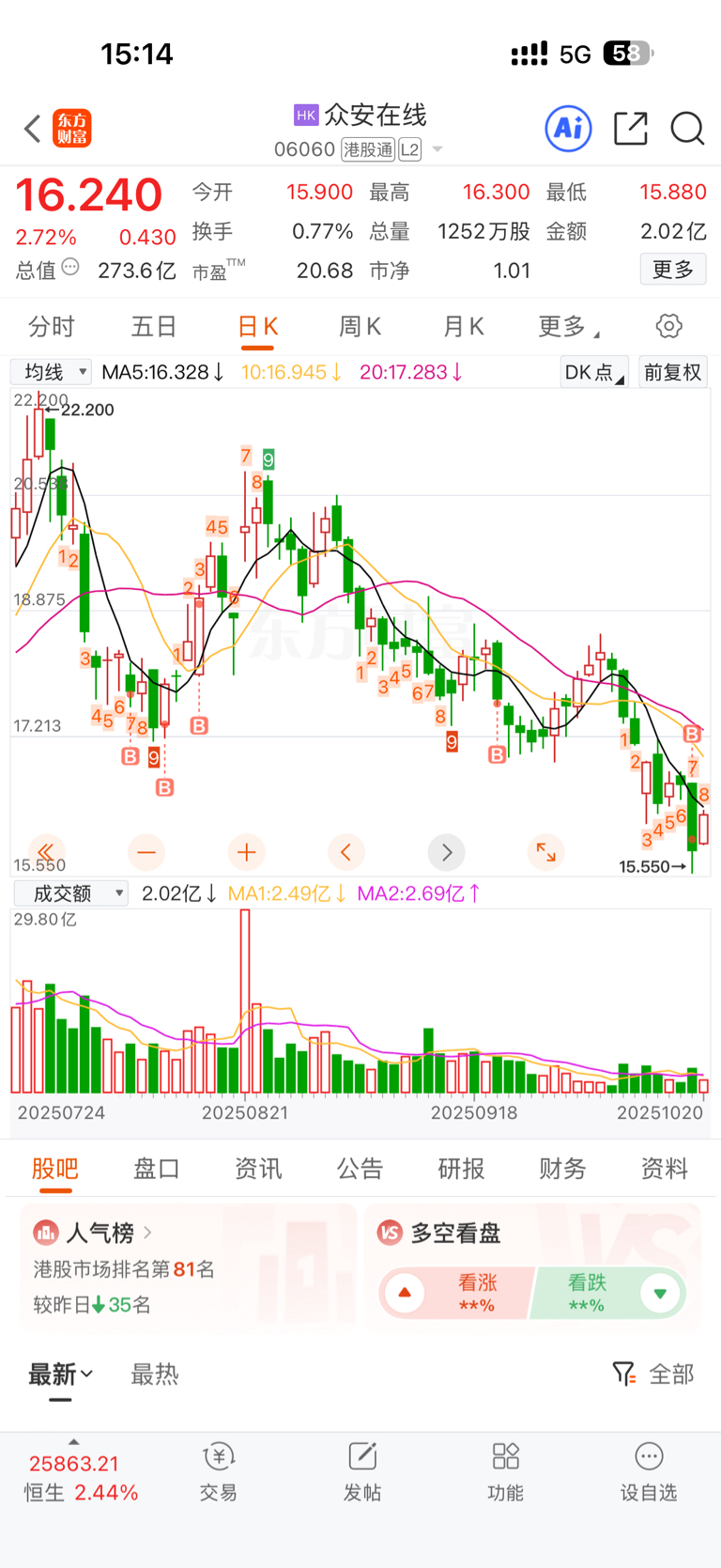 $众安在线(HK|06060)$ 3层仓位了,别让我继续加了