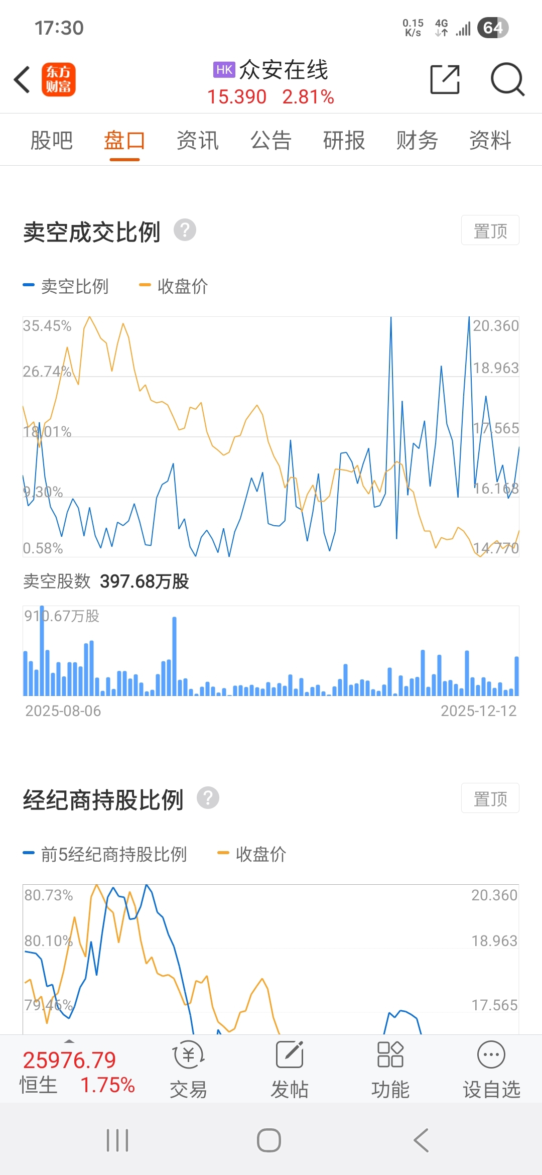 $众安在线(HK|06060)$ 卖空怎么这么多