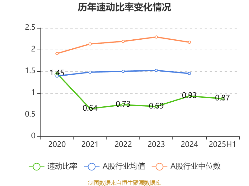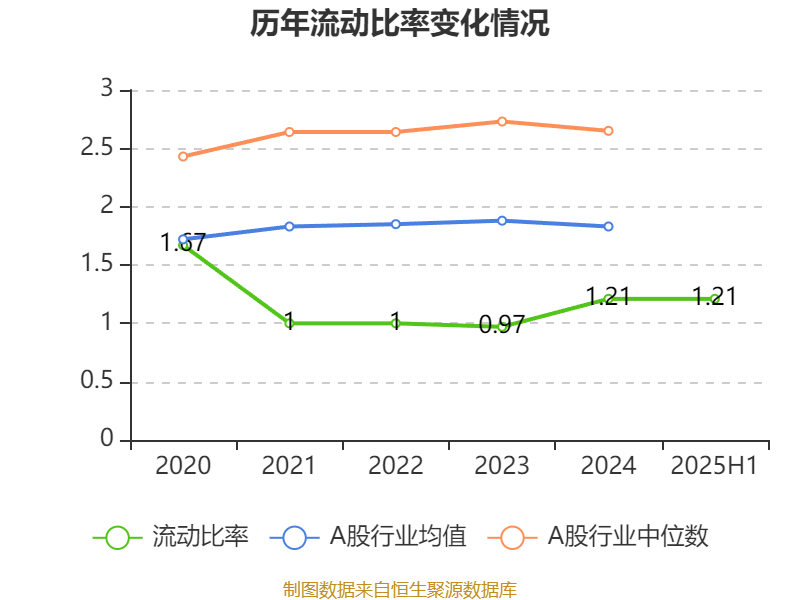 2025年上半年,公司流动比率为1.21,速动比率为0.87。