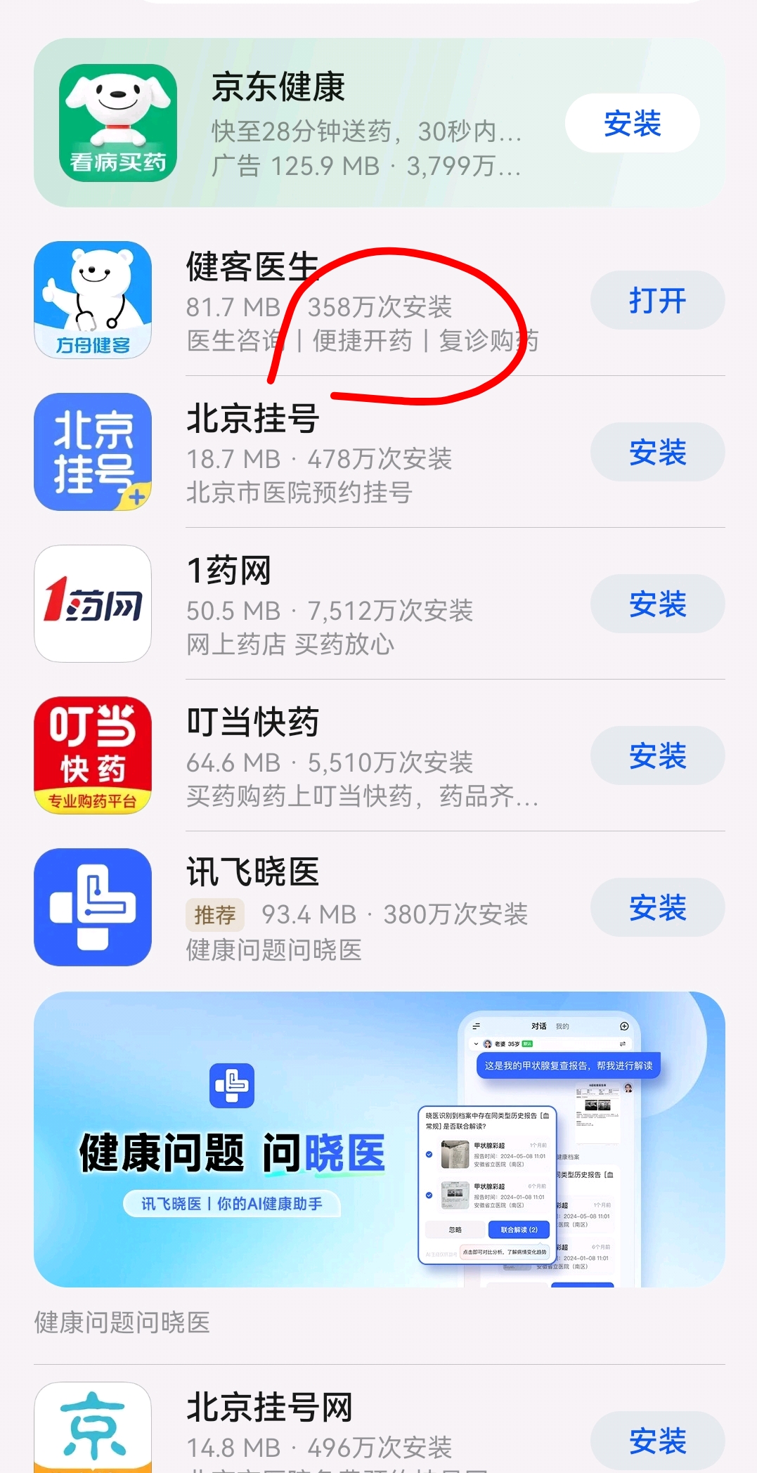 告诉大家一个好消息,安卓系统,健客医生从9.16到9.30,下载量从350--3