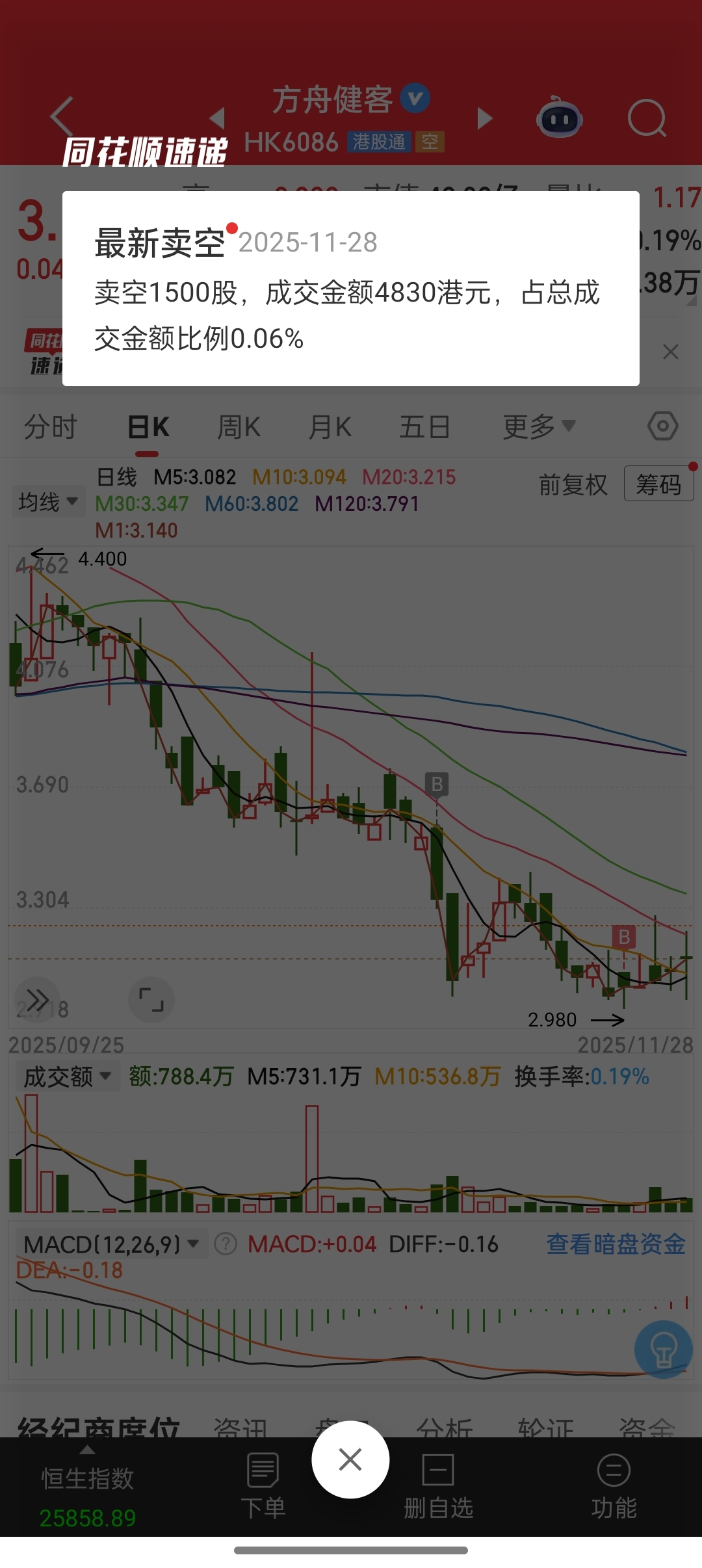 $方舟健客(HK|06086)$ 太可怕了,卖空1500股