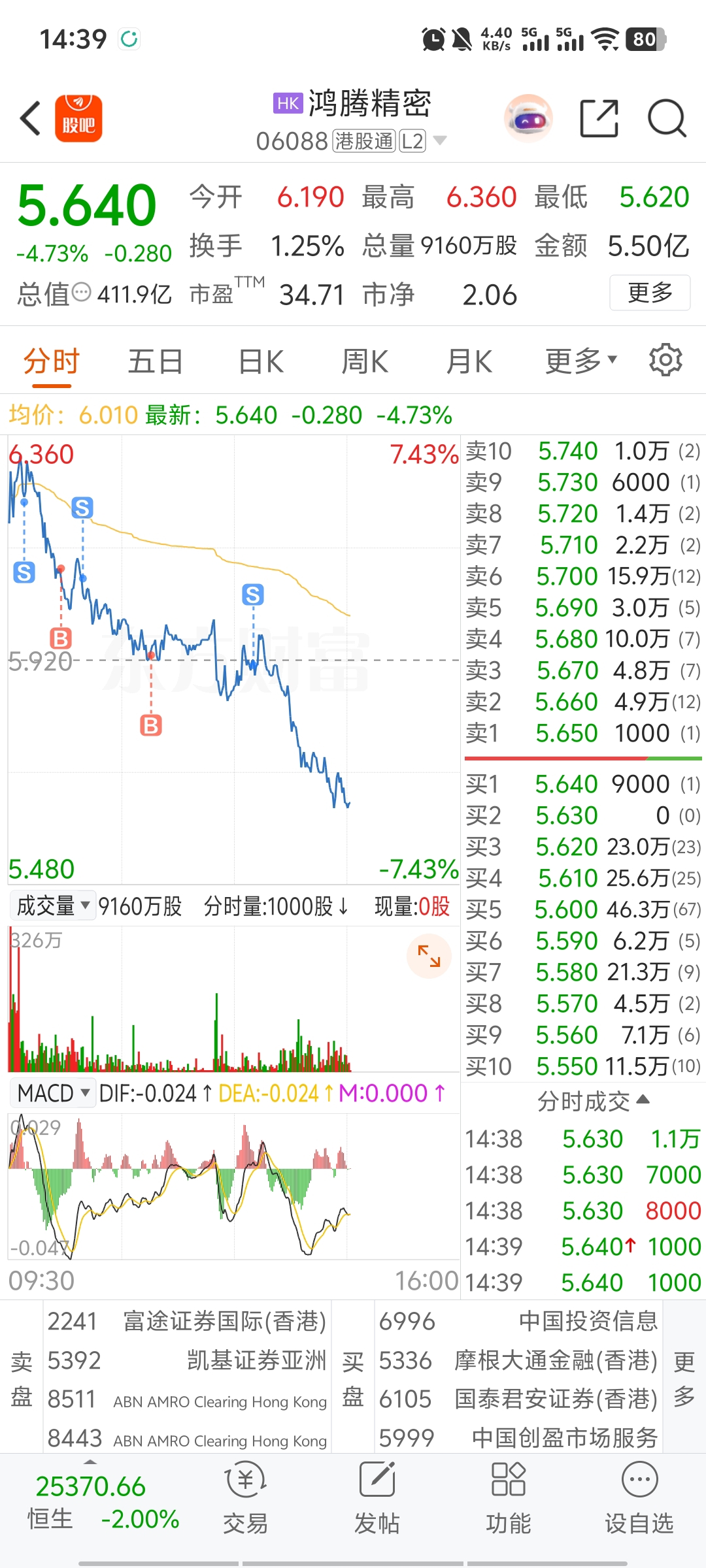 $鸿腾精密(HK|06088)$ 躲过了下跌,万幸