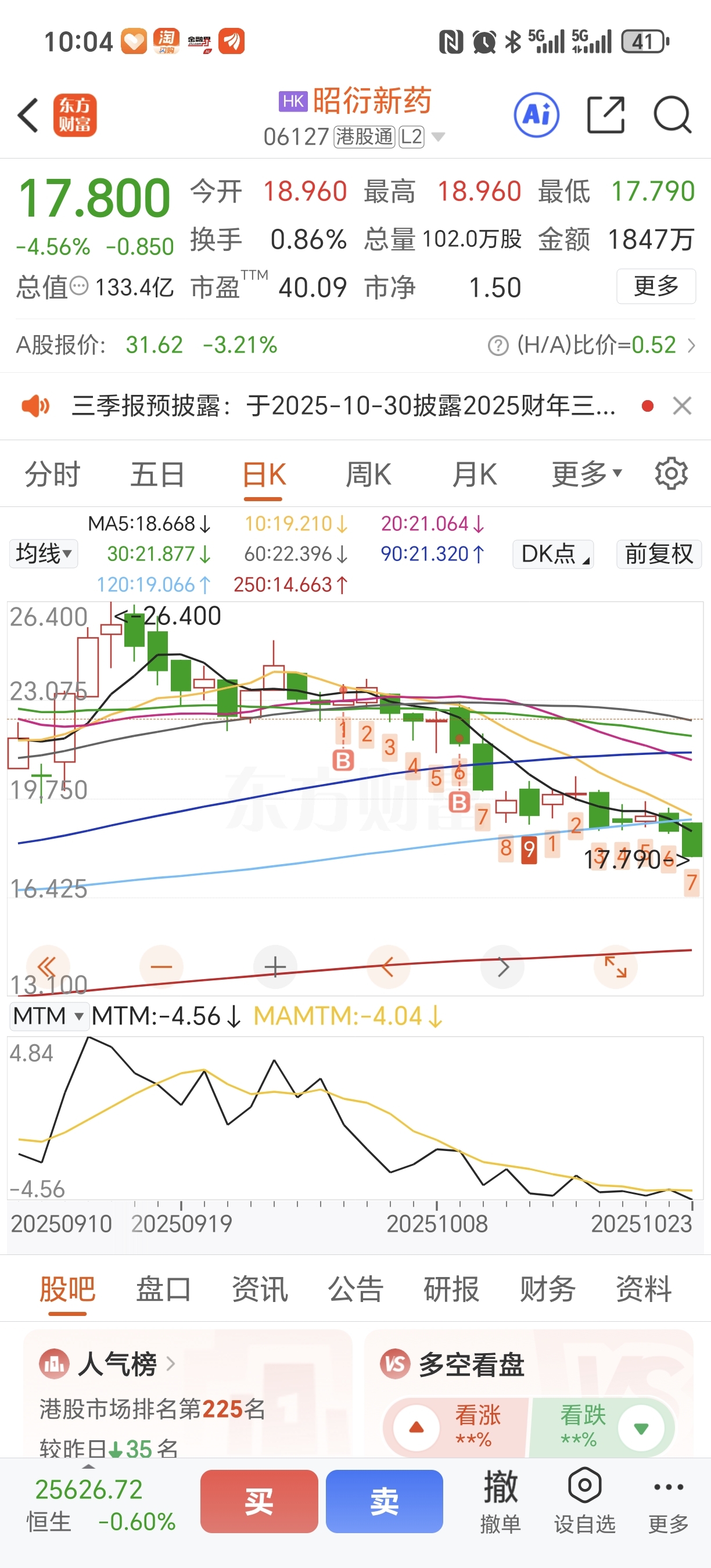 $昭衍新药(HK|06127)$ 买了就一直跌