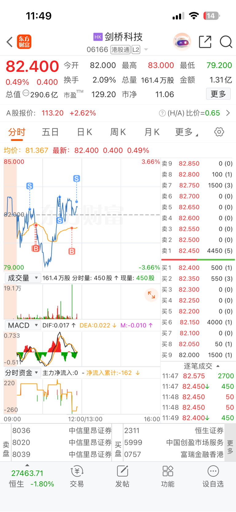$剑桥科技(HK|06166)$ 感谢主力给我三次做T的机会