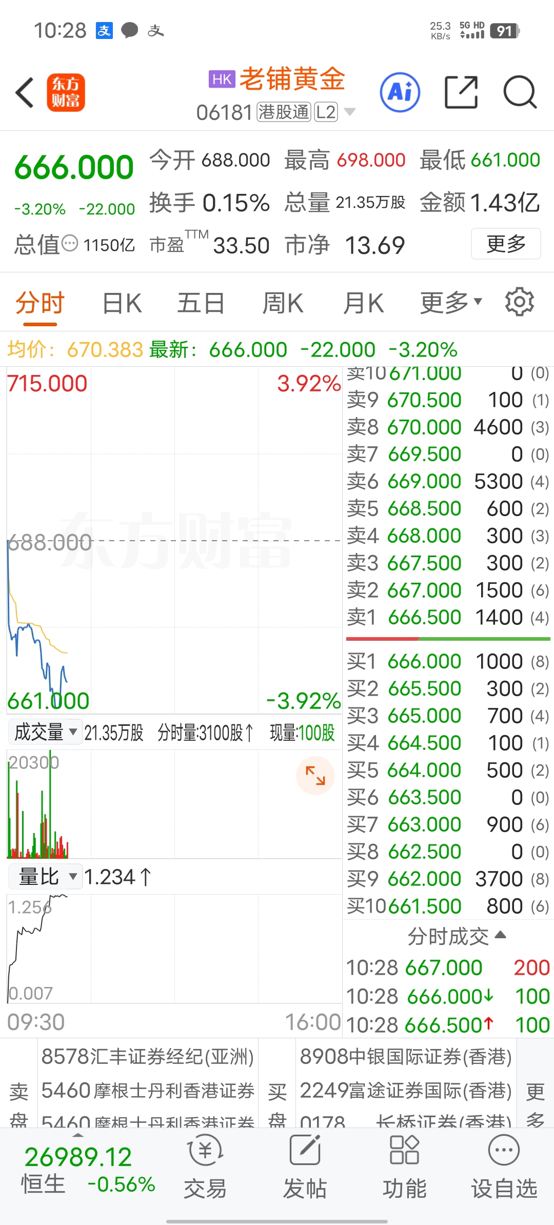 $老铺黄金(HK|06181)$ 666