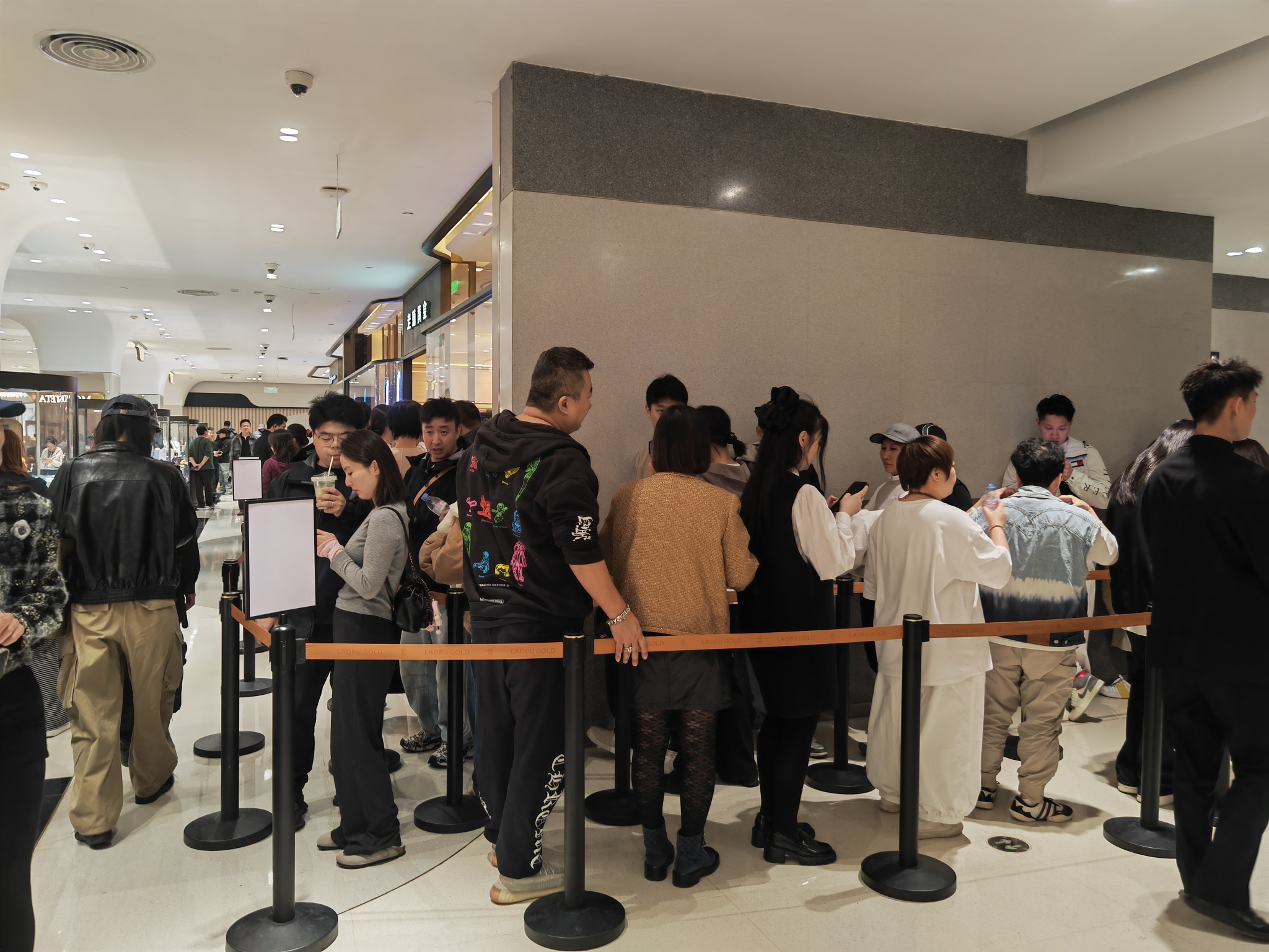 10.18号下午3点北京SKP一楼门店和负一楼门店两家店实况,排队3小时起步,而同时旁边其他品牌可以说“门可罗雀”,老铺黄金在黄金奢侈品这个赛道上已经成功占据了消费者的心智#当代年轻人黄金血脉觉醒