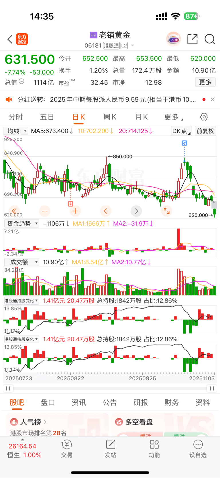 $老铺黄金(HK|06181)$ 这个卖出可以打几分
