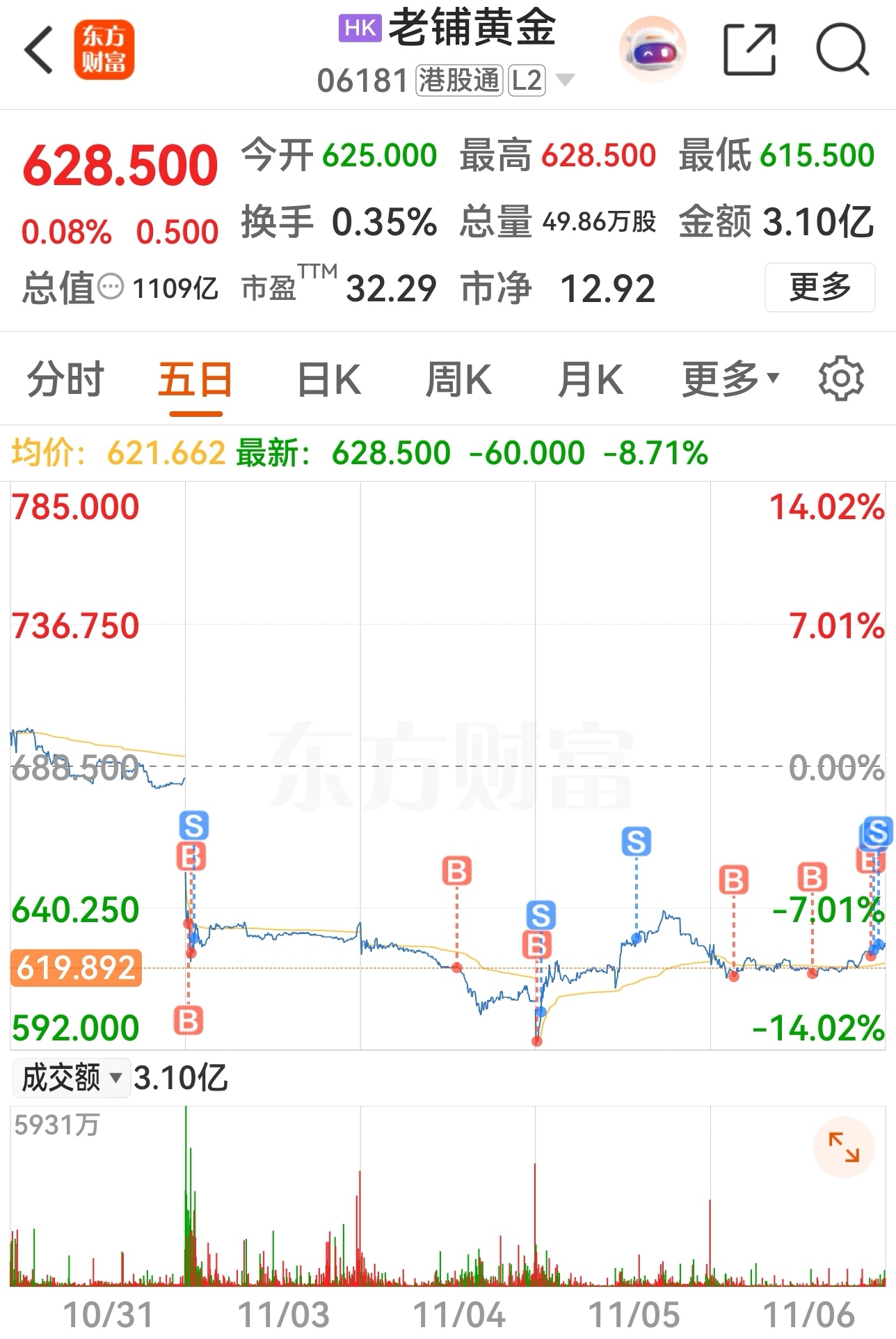 $老铺黄金(HK|06181)$ #复盘记录# 糟老头子坏得很,不讲武德。