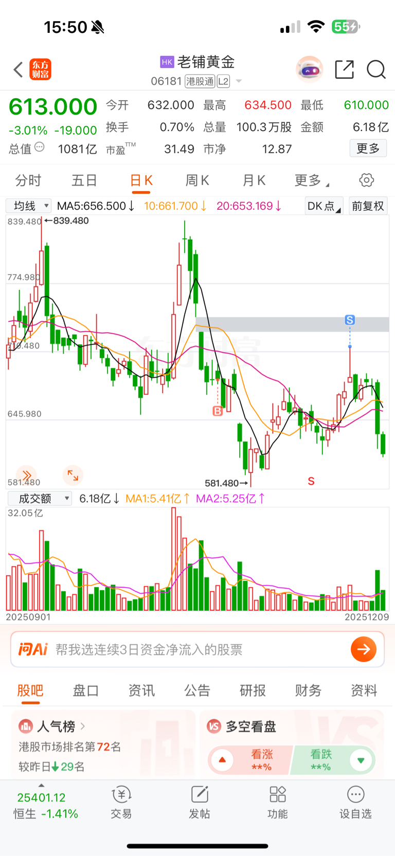$老铺黄金(HK|06181)$ 感谢上次逃跑的自己…太可怕最近的H股