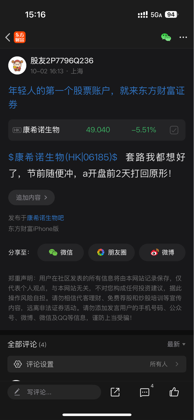 温馨提示: 1.根据《证券法》规定,禁止编造、传播虚假信息或者误导性信息,扰乱证券市场;2.用户在本社区发表的所有资料、言论等仅代表个人观点,与本网站立场无关,不对您构成任何投资建议。用户应基于自己的独立判断,自行决定证券投资并承担相应风险。《东方财富社区管理规定》