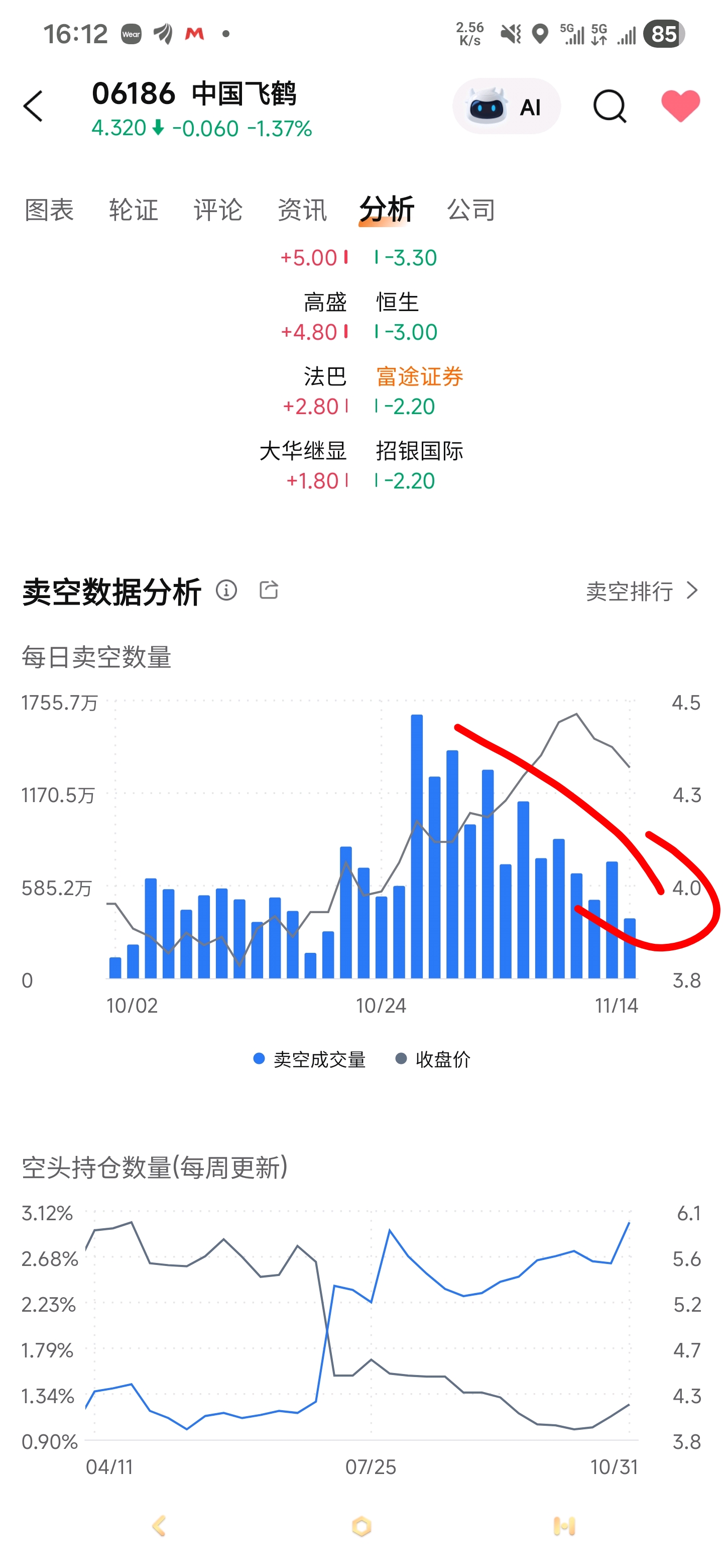 $中国飞鹤(HK|06186)$ 最近公司回购力度加大,但承接了很多协议盘,不过空单最近已经减少,看下周多头能不能反攻吧。