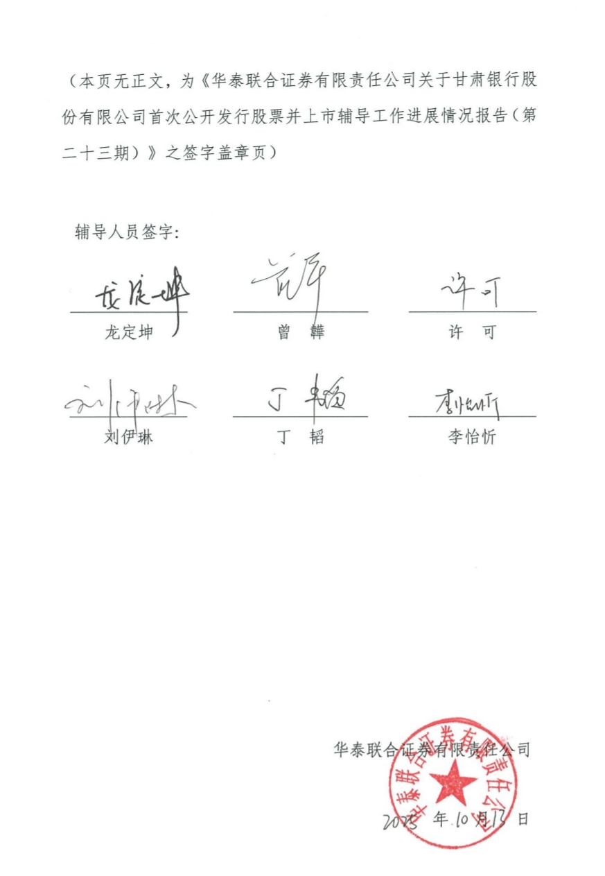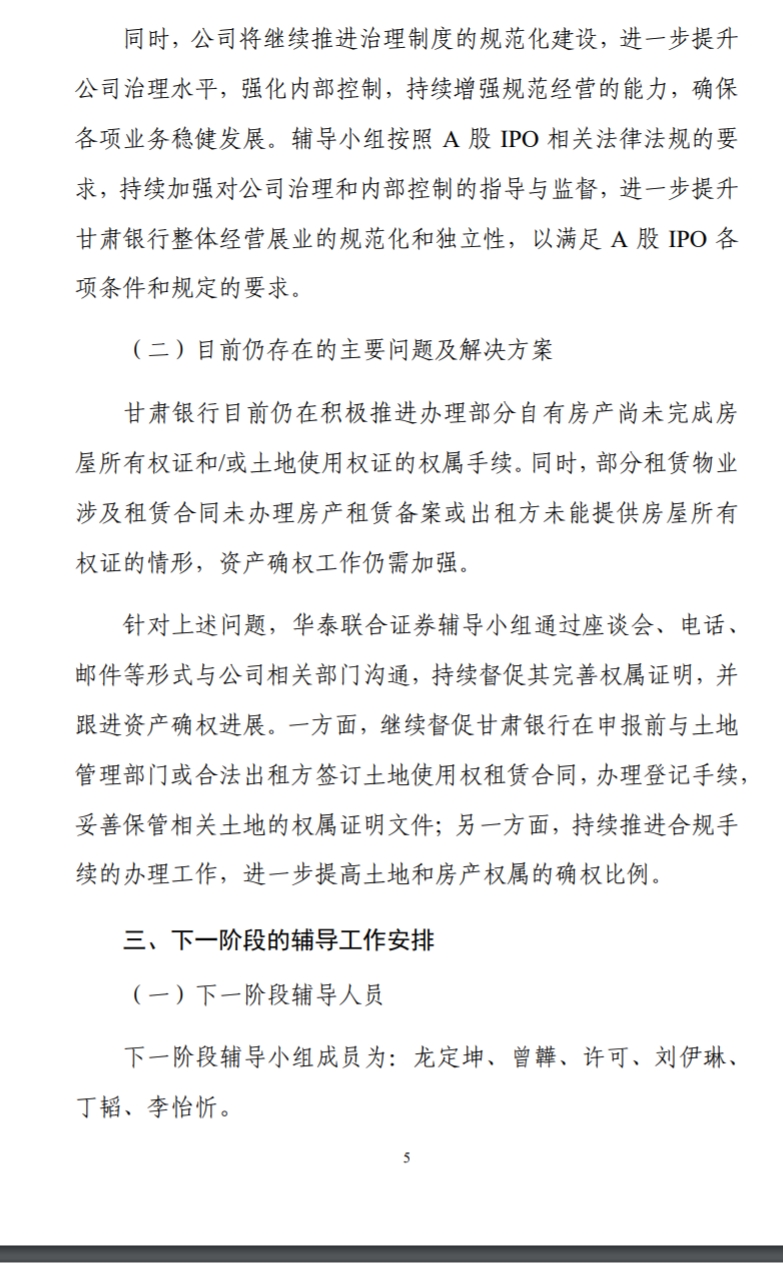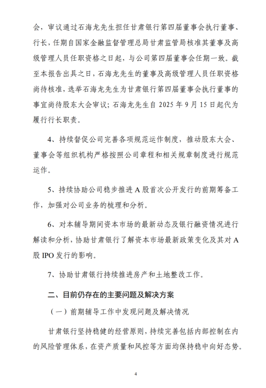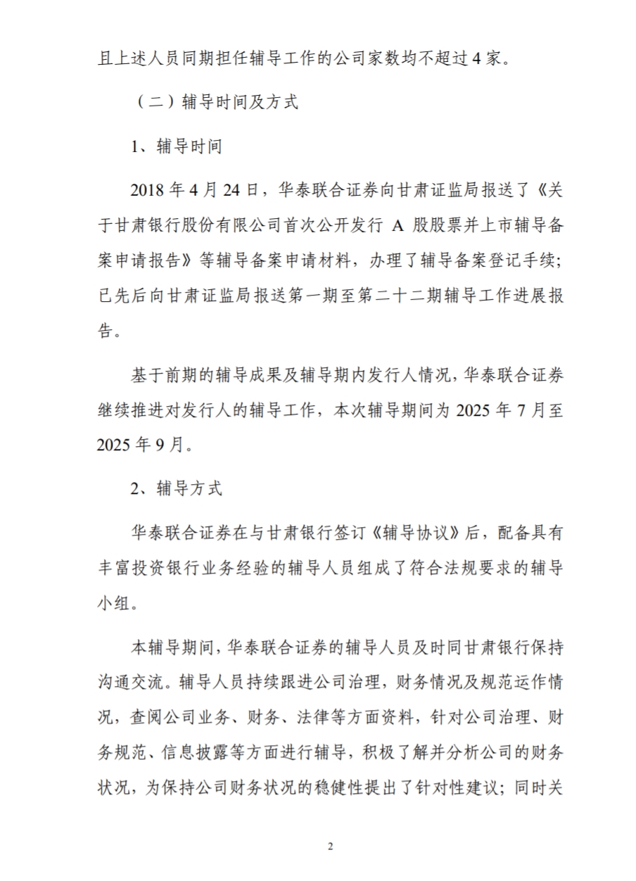 2025年7至9月甘肃银行A股上市辅导报告