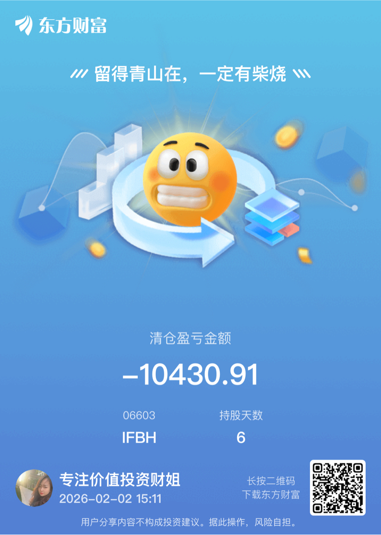 $IFBH(HK|06603)$ 怎么会这样?上午涨5个点,下午跌3个点!利润全没了,反而成亏1万了!