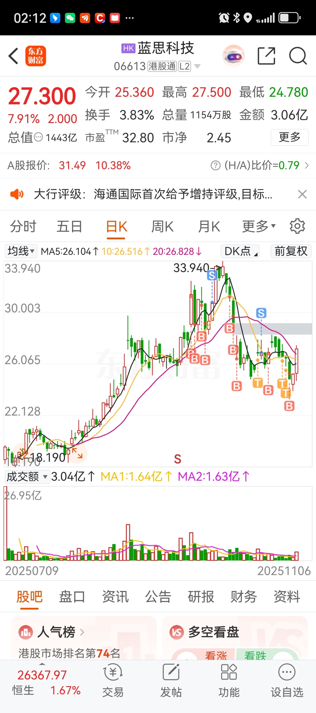 $蓝思科技(HK|06613)$ 加油啊。还亏9个点