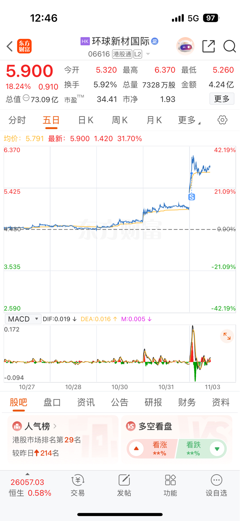 $环球新材国际(HK|06616)$ 卖飞了只吃30个点