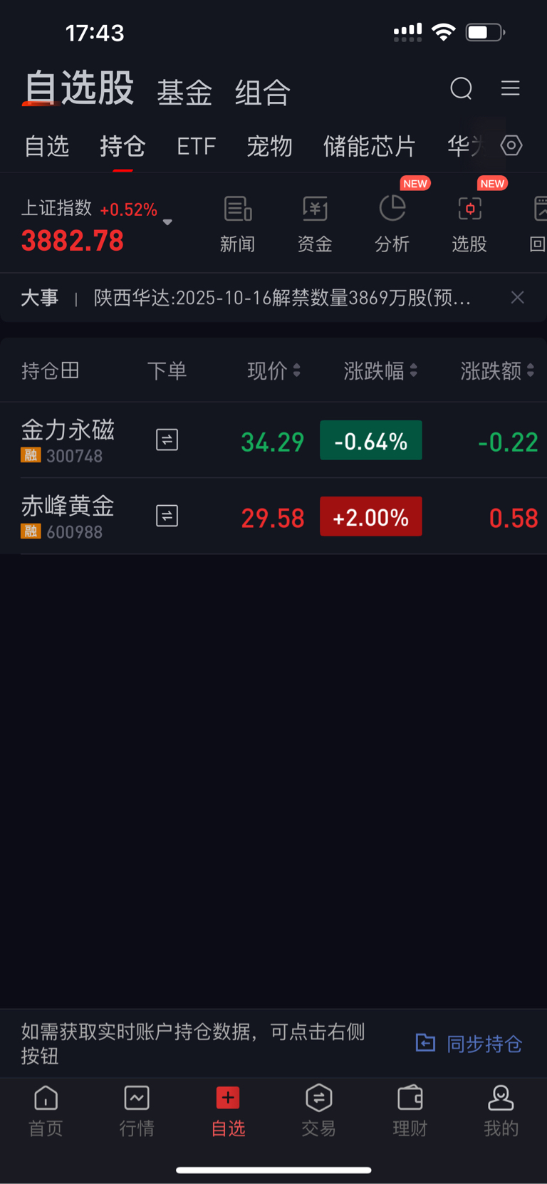 很幸运节前小账户满仓$金力永磁(SZ300748)$ )$赤峰黄金(SH600988)$