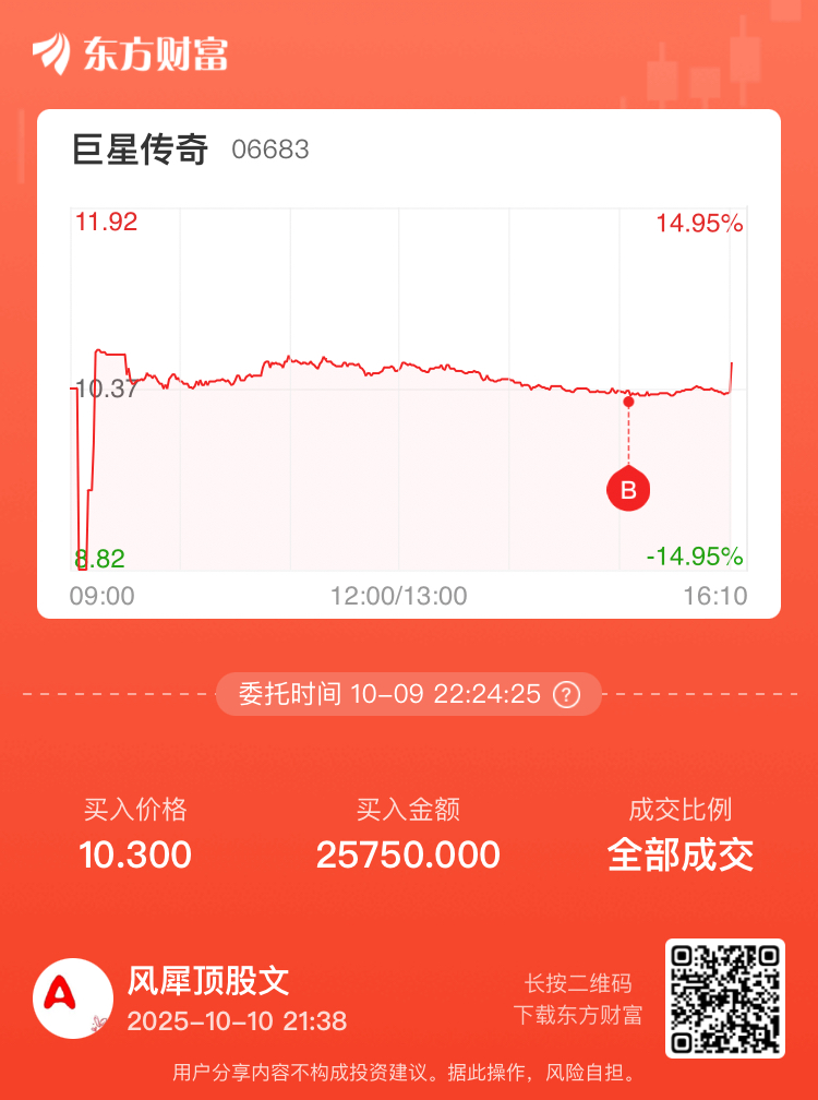 委托标的:买卖方向:笔记:今天买了点巨星传奇,下周一不会跌吧。