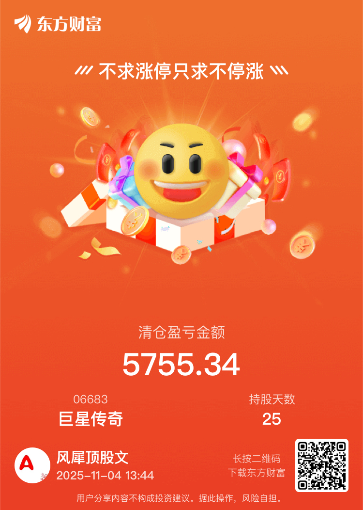 今天我卖了巨星,留下来的发财!