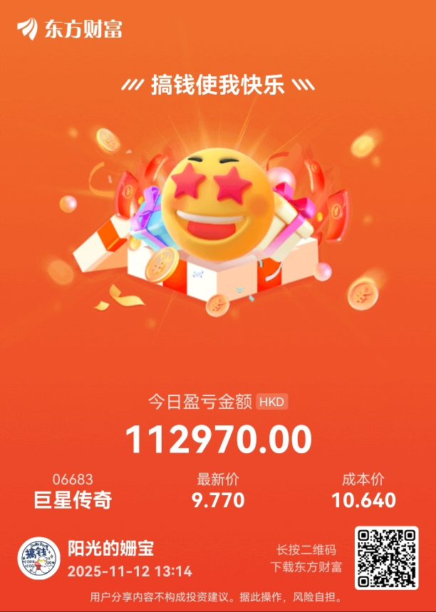 $巨星传奇(HK|06683)$ 加油加油,让我回个本先