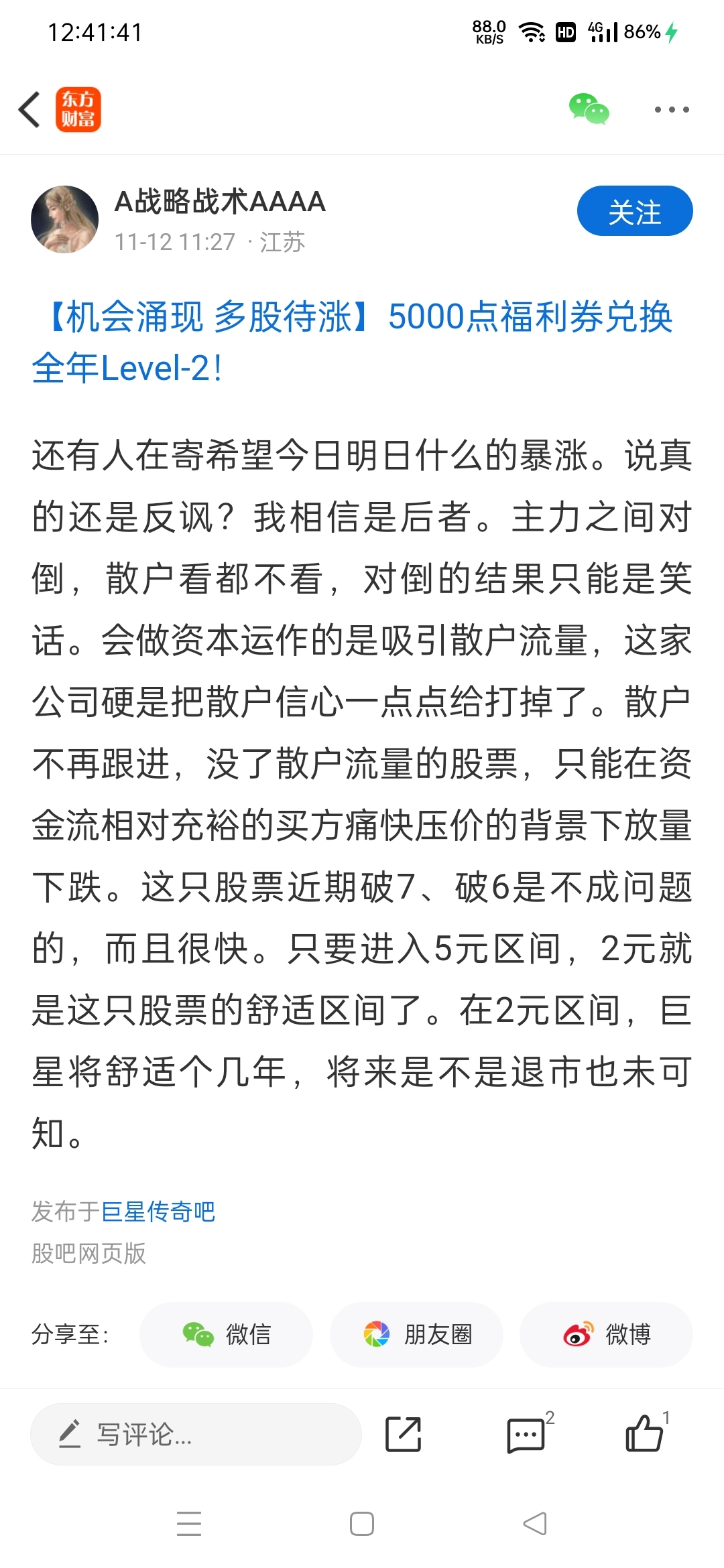 温馨提示: 1.根据《证券法》规定,禁止编造、传播虚假信息或者误导性信息,扰乱证券市场;2.用户在本社区发表的所有资料、言论等仅代表个人观点,与本网站立场无关,不对您构成任何投资建议。用户应基于自己的独立判断,自行决定证券投资并承担相应风险。《东方财富社区管理规定》