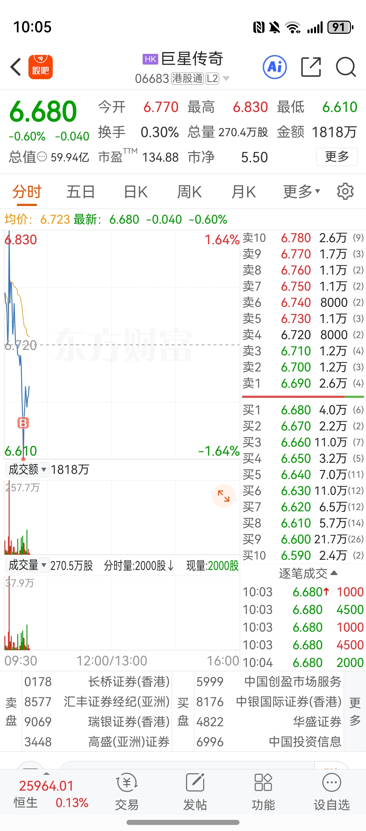 $巨星传奇(HK|06683)$ 对不起我头铁,6.61全仓梭哈,有本事你砸死我呀,来呀来呀,