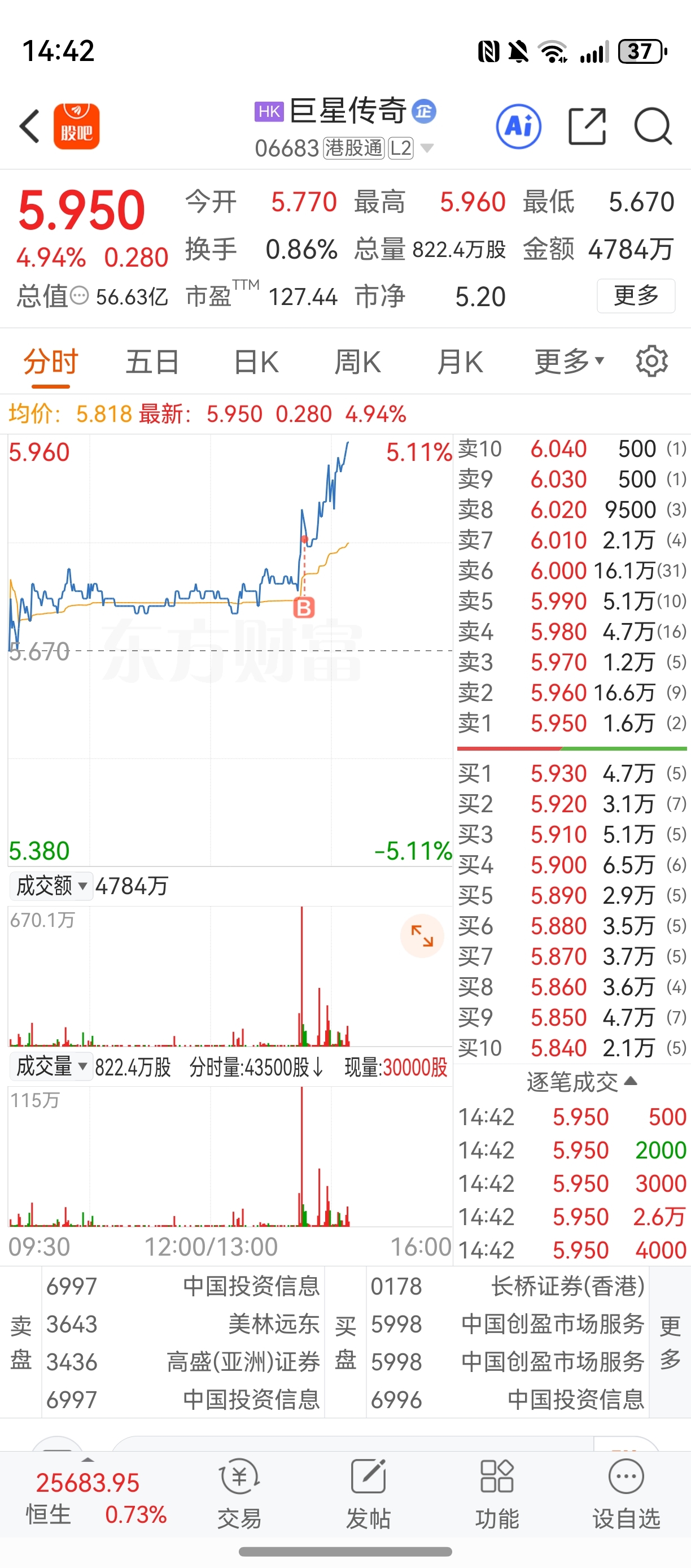 $巨星传奇(HK|06683)$ 抄底了兄弟们,周末估计有利好出来!