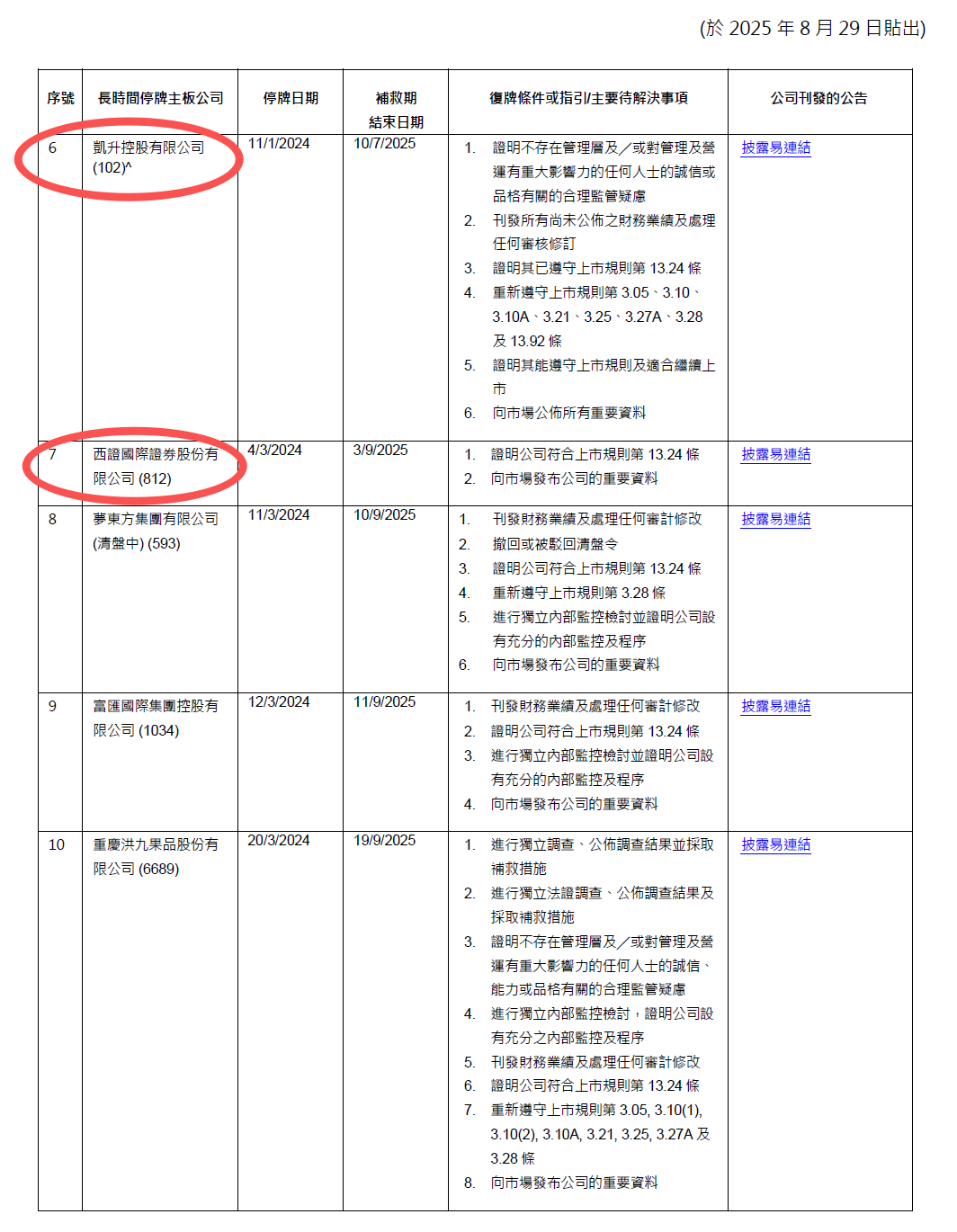 凯升控股、西证国际已经被取消上市地位,抬走了。