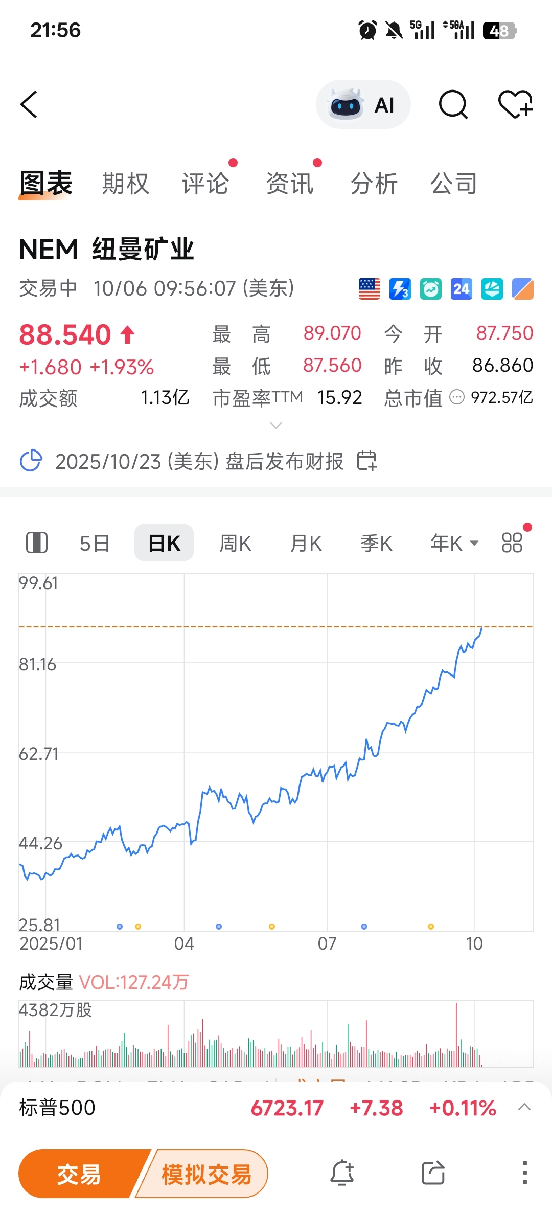 美国最大的黄金矿股,距四月份已经翻倍,赤峰还没新高我反正不卖