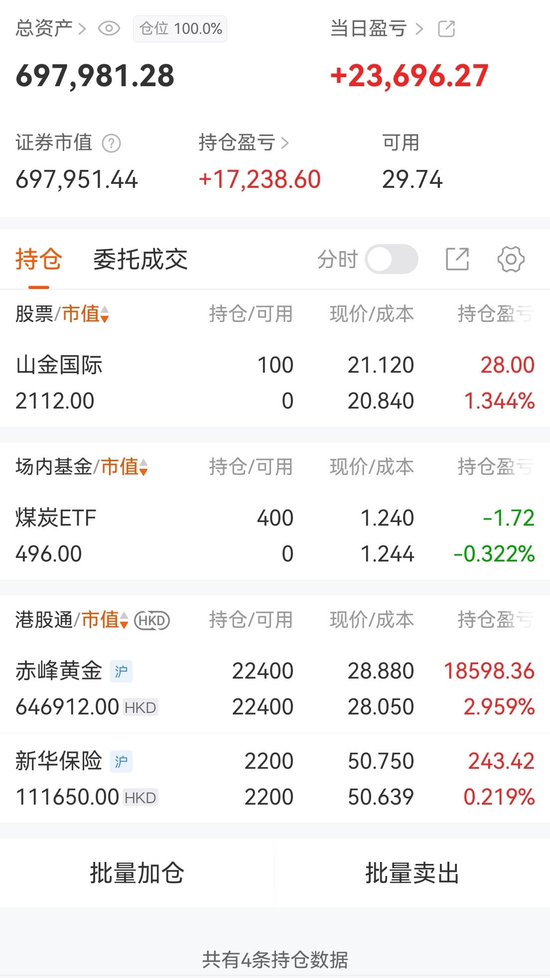 $赤峰黄金(SH600988)$ 地鼠王今天的全部操作展示。今天赤峰黄金AH比值缩小了,这是好事情,但是地鼠王依旧亏了八个点,可谓是损失惨重。于勒叔叔买的股票居然红了,昨天不还亏了接近五个点吗?真是神奇。