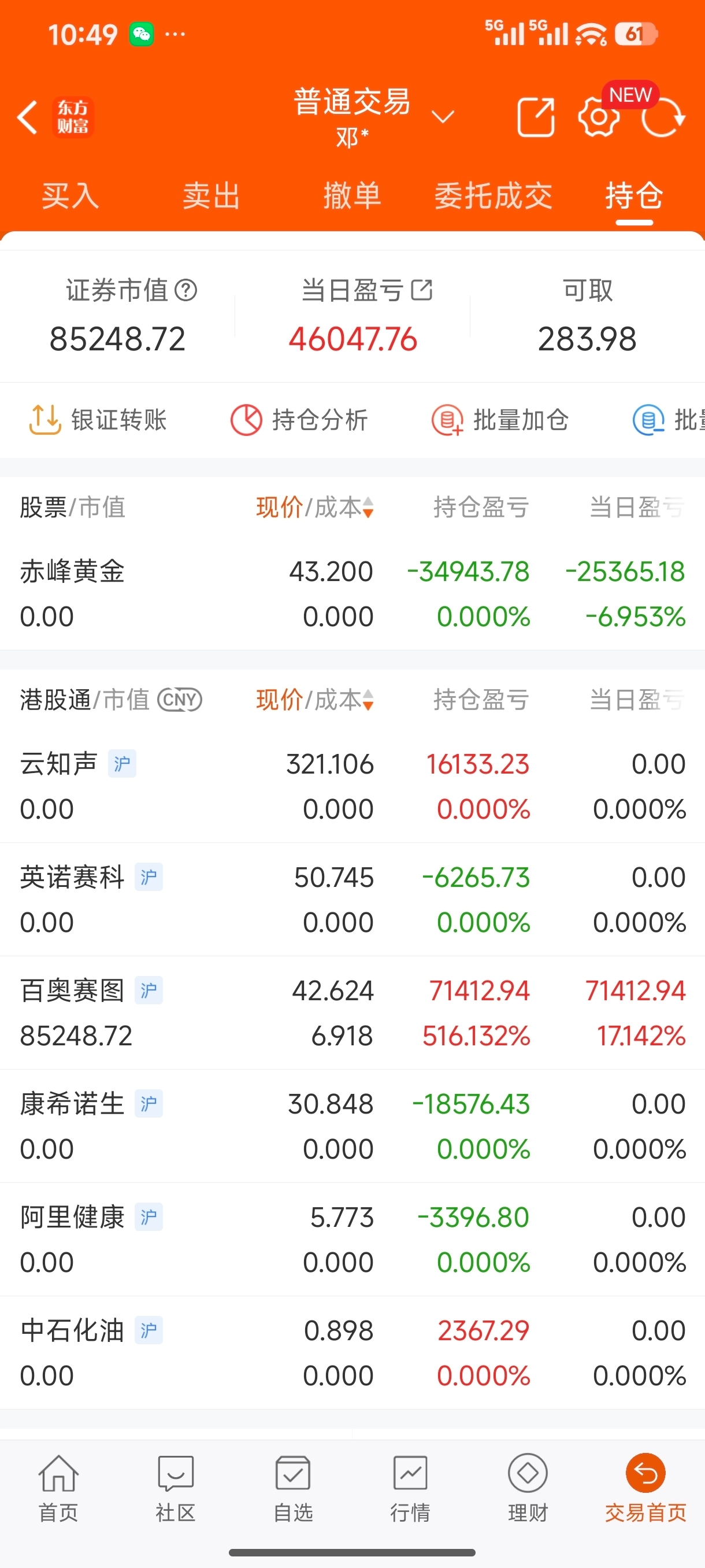 $赤峰黄金(HK|06693)$ 昨天满仓进来,今天一早出了,进了港股,大回血,准备销户了,股市真不适合我,想想都怕!昨晚一夜没睡!
