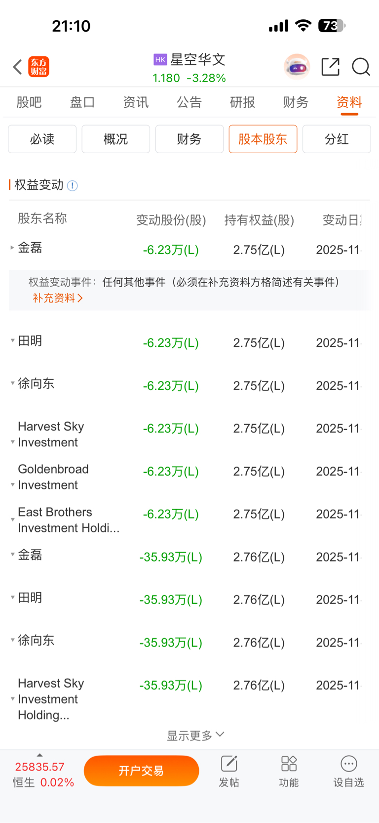 $星空华文(HK|06698)$ 大股东又开始减持了