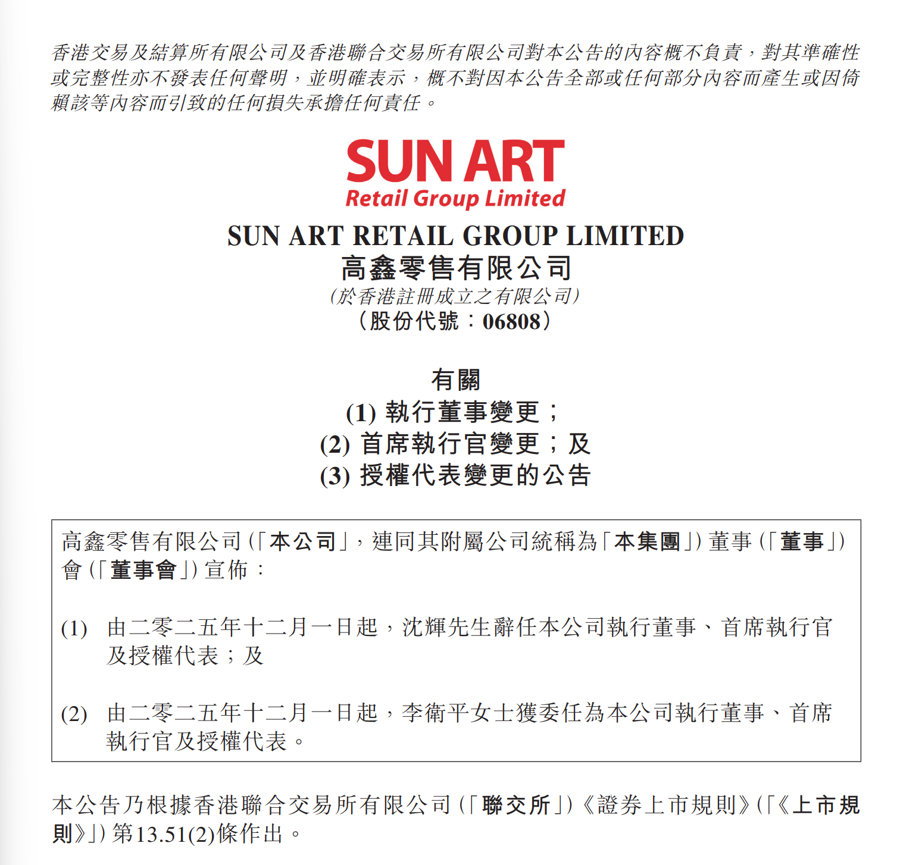 高鑫零售发布CEO变更公告