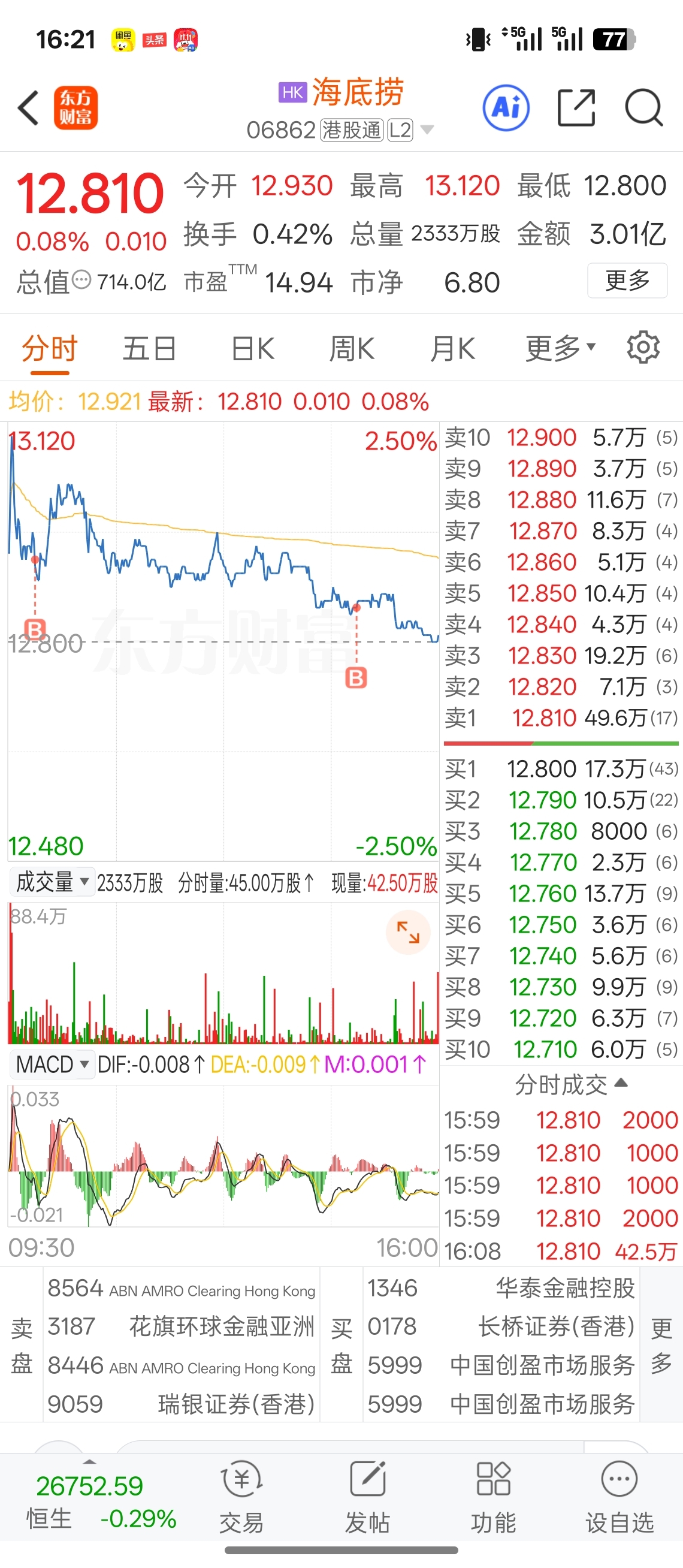 $海底捞(HK|06862)$ 不知道还说啥,一俩月了,一个劲跌