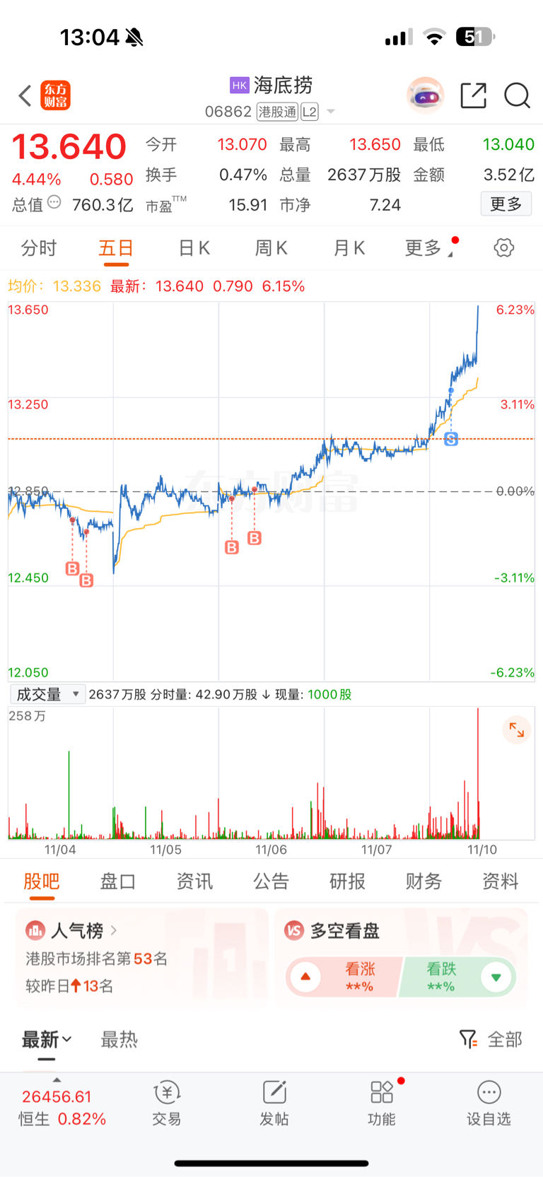 $海底捞(HK|06862)$ 谁懂?早上卖个der啊我!